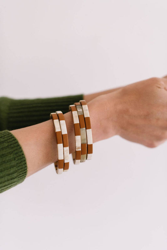 Sunshine Tienda - Teracotta and Ivory Tile Bangle Set