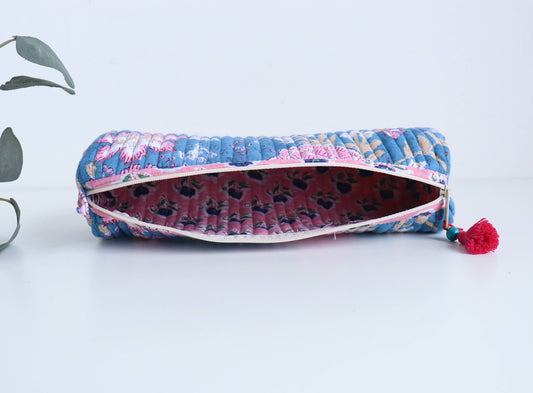 TerraWeave - Quilted Round Pencil Pouch, Make up Brush Bag, Organizer