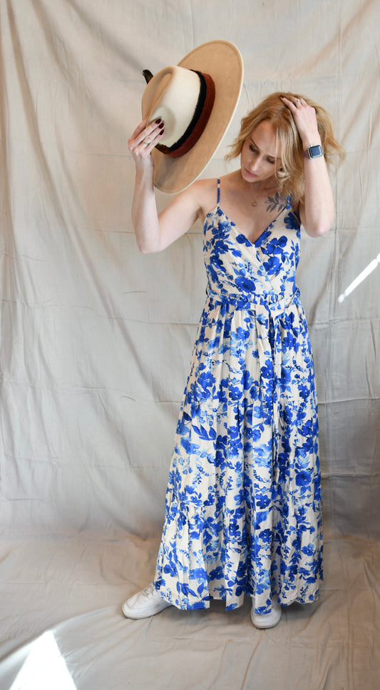 Emilia Blue Watercolor Flower Maxi Dress