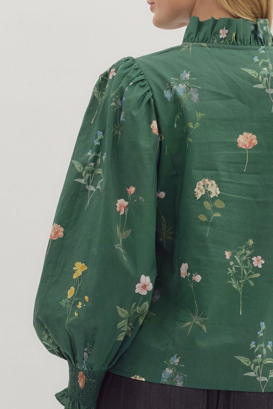 Flora Green Floral Top