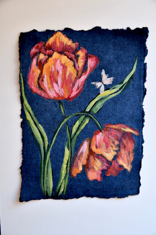 Fancy Tulips on Blue No 2