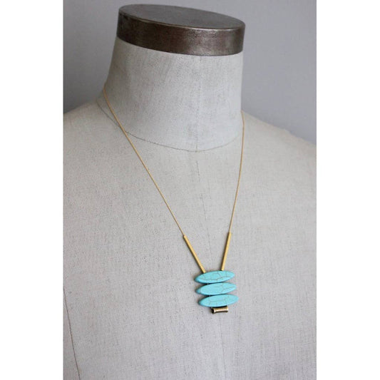 David Aubrey Jewelry - RYL119 Geometric turquoise ellipse pendant necklace