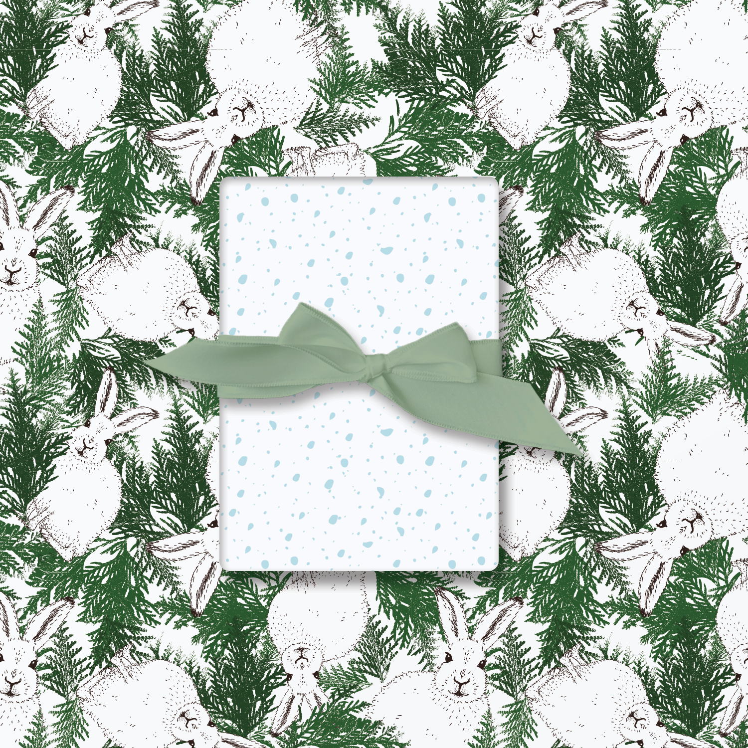 Ballard & Prescott - Arctic Hares in Pine – Double-Sided Winter Wrapping Paper