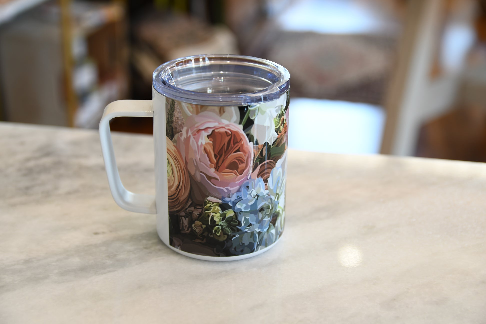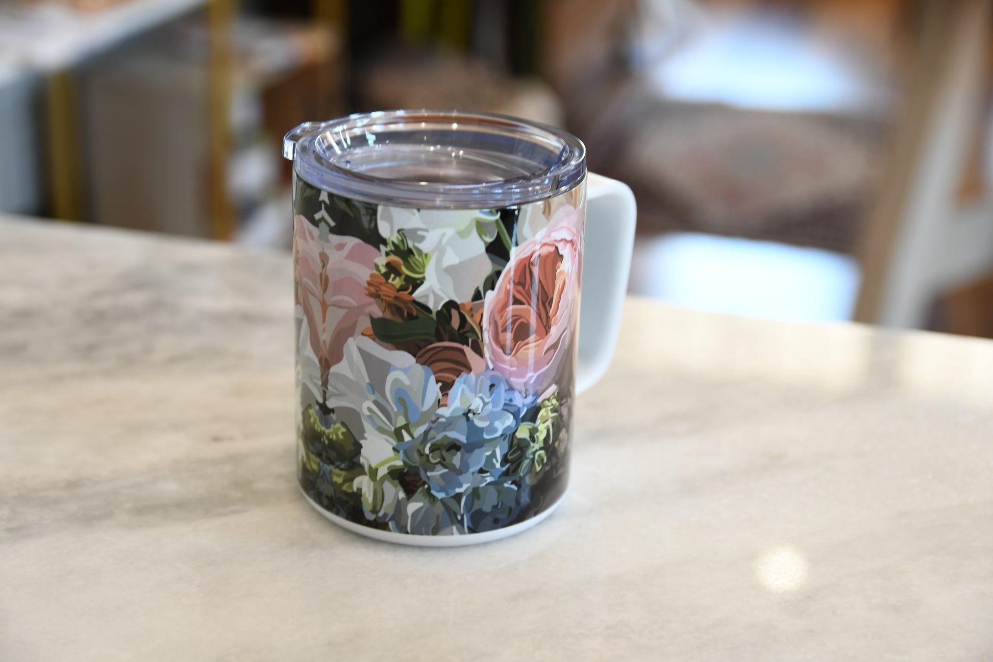A classic handled mug with a travel lid in stainless steel! Easy to hold and convenient to carry from home to office. Keeps beverages warm or chilled.
