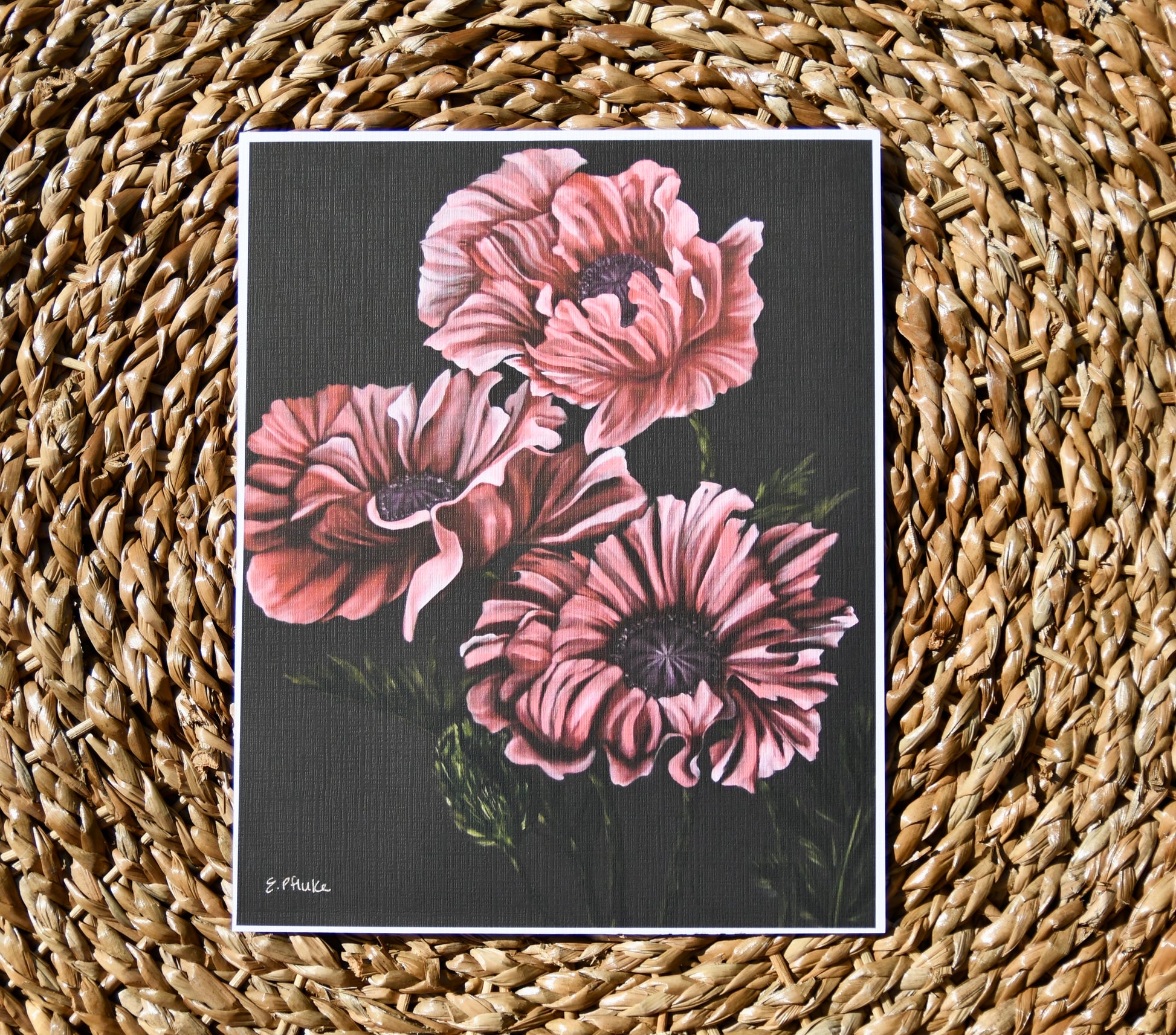 This piece showcases poppies, beautifully and peacefully swaying in the night breeze.