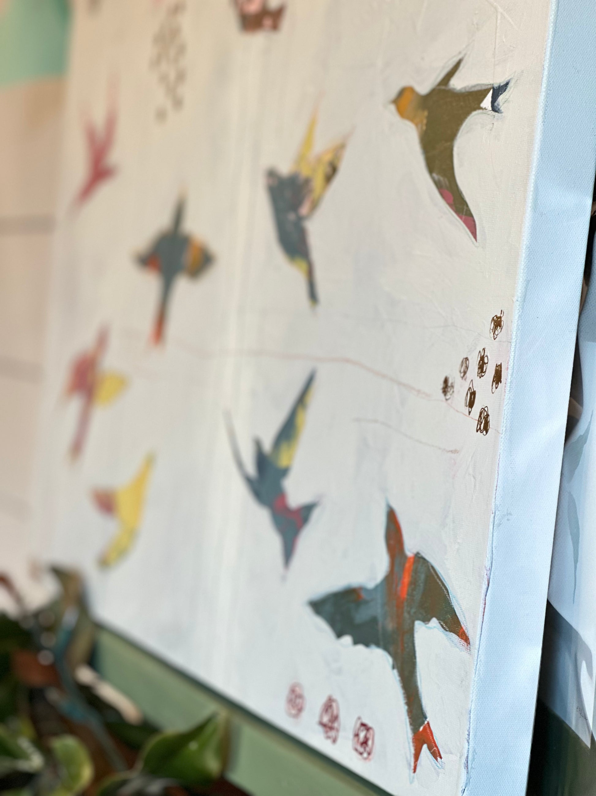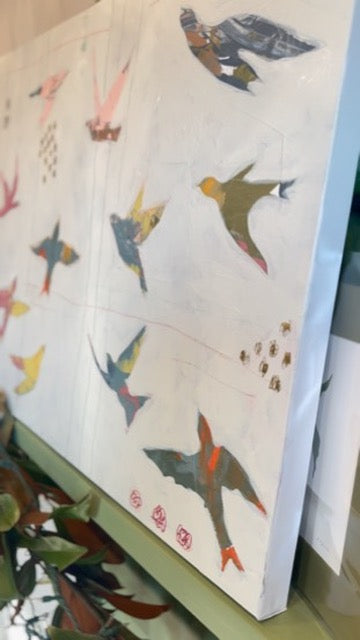 There is so much beauty from this perspective, from being high above things, able to see all for what it is. To see beyond stresses and challenges. To see the whole picture. Beauty in the Heights. 24x30". Acrylic, colored pencil and oil pastels. Painted by shopkeeper Erika Pfluke