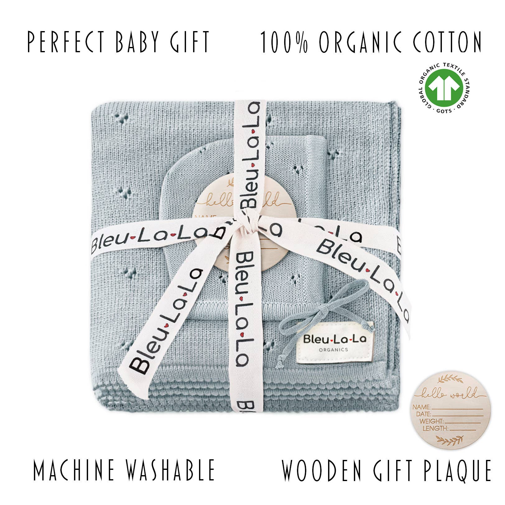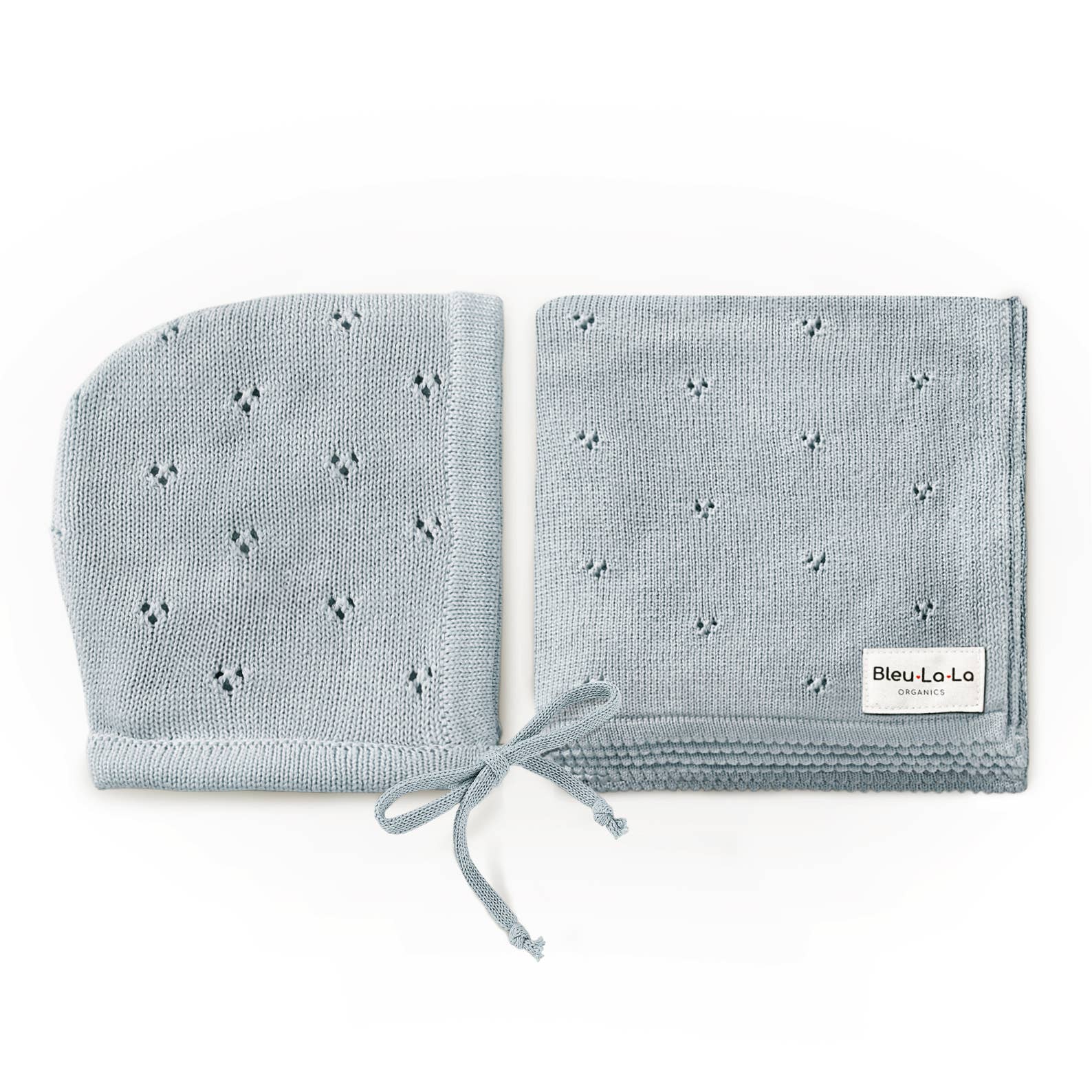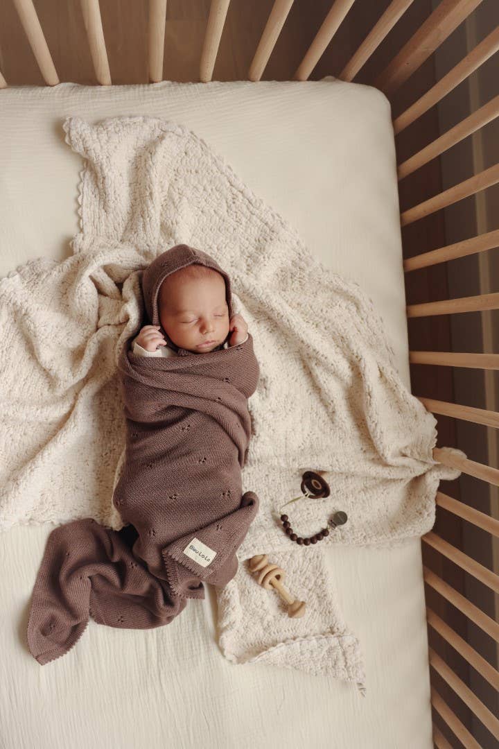 Bleu La La - 100% Organic Cotton Luxury Organic Blanket + Bonnet Hat Set: Brown
