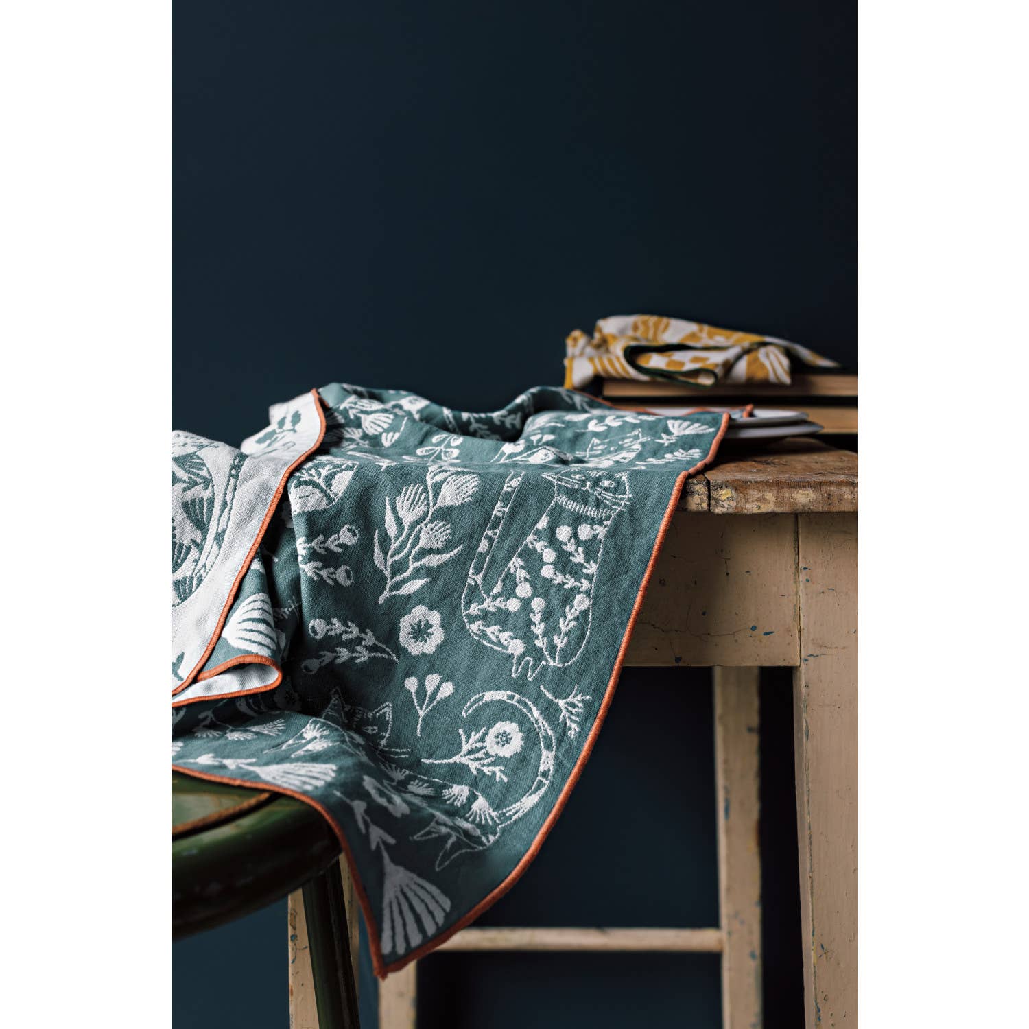 Lush to the touch, this layered Catbloom cloth dishtowel offers double the design and durability. A loose weave allows for quick drying times and gives the towel a lightweight feel. The second layer offers a mirrored way to see each design.