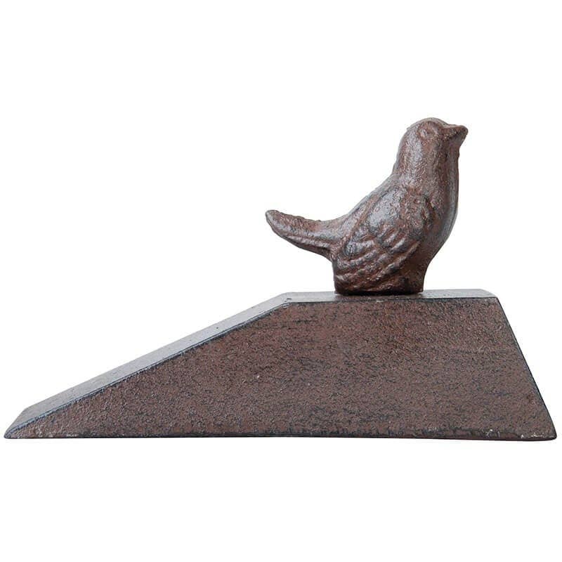 Bird Silhouette Doorstop, Cast Iron, Antique Brown. No more slamming doors, thanks to this cast iron wedge with decorative bird. Its slanted slope cause it to wedge under the door. This decorative cast iron door stopper has been hand cast according to age old tradition and craftsmanship.. Bird silhouette doorwedge