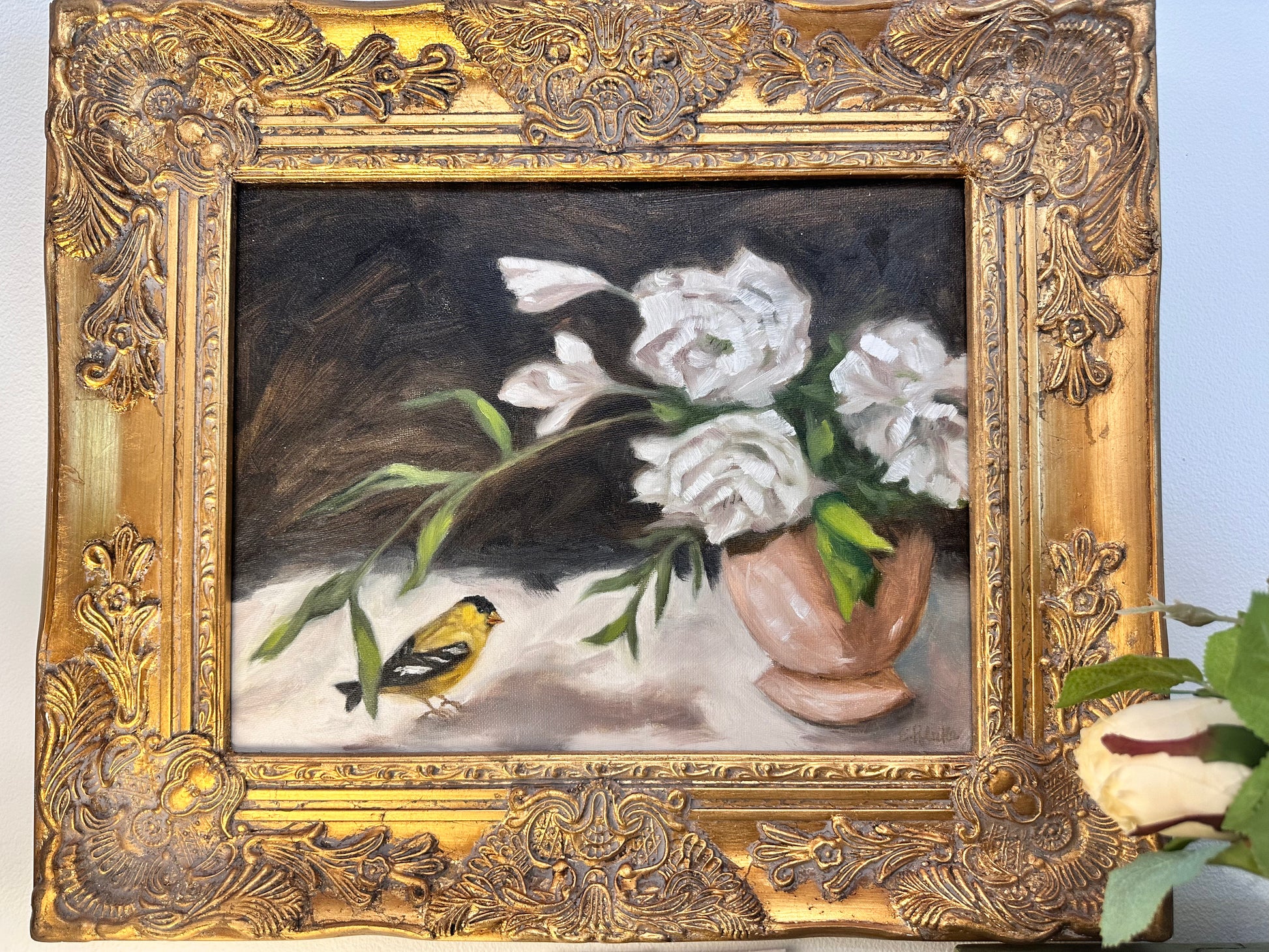 Goldfinch and Peonies Original Framed Art