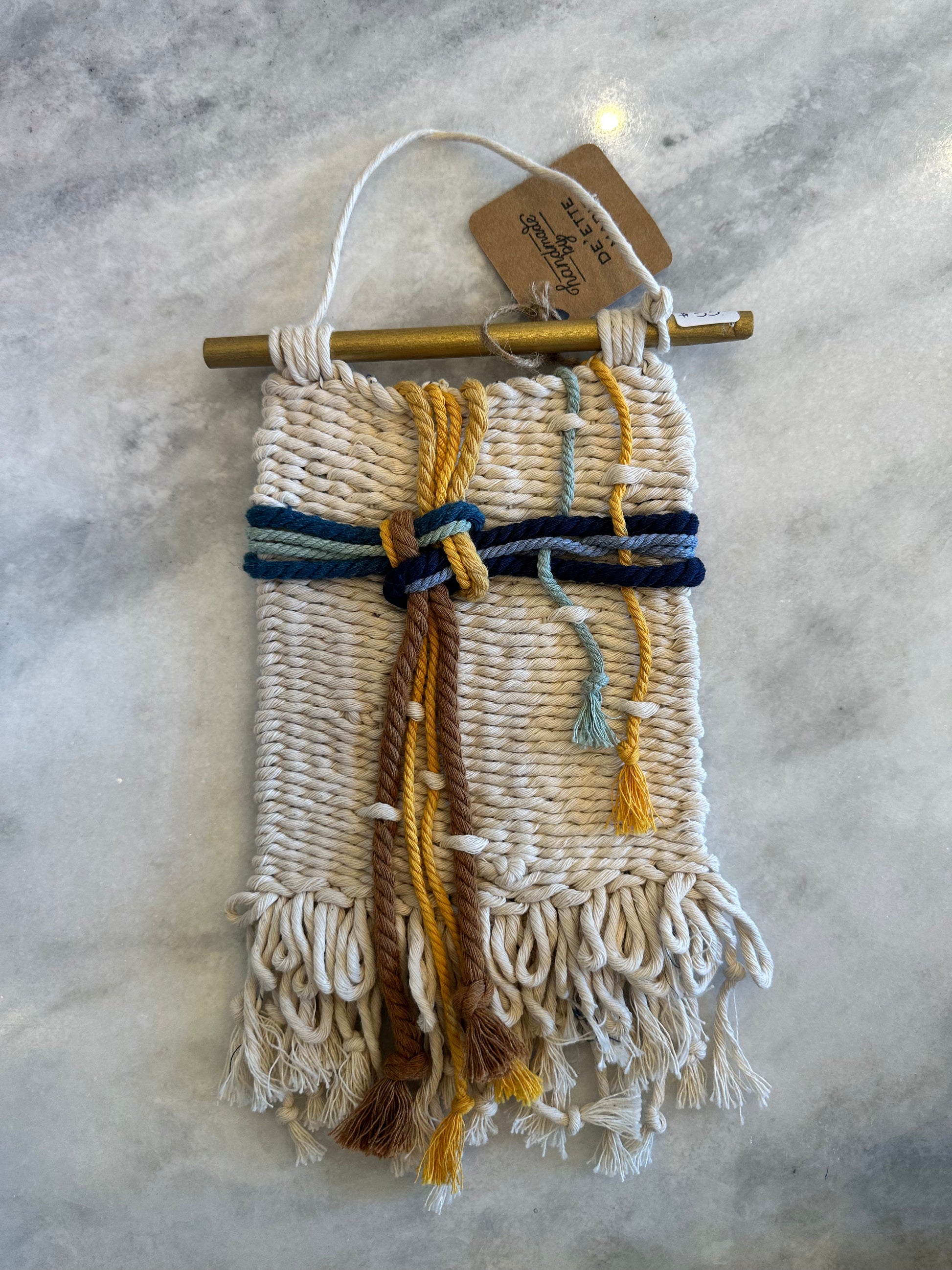 Approximately 6x9" Handwoven wall tapestry made with synthetic and natural fibers, including wool, cotton, silk, linen, banana fiber, repurposed fabrics, hand dyed and hand spun yarns and more. Hi, I’m De’Ette! I create tactile, textural wall hangings for your homes and spaces, entirely by hand. My inspiration comes from many places - there is beauty all around us! But I often draw from nature, verses in scripture, and the beauty of the fibers themselves. I believe that beauty is one of the ways God tells of His love for us, and I love getting to be part of that message as I weave, creating beauty from various natural and synthetic fibers.