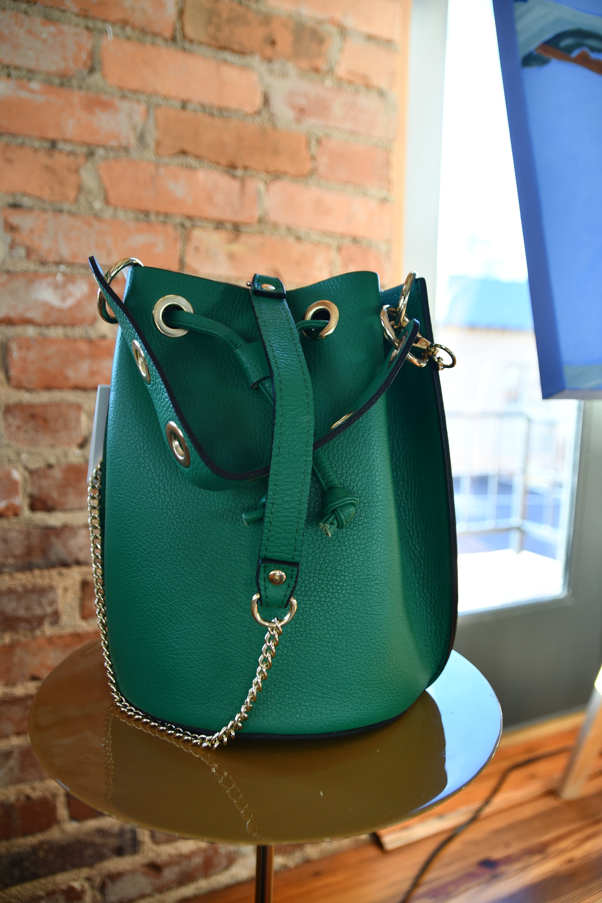 Italian Leather Bucket Bag - Kelly Green