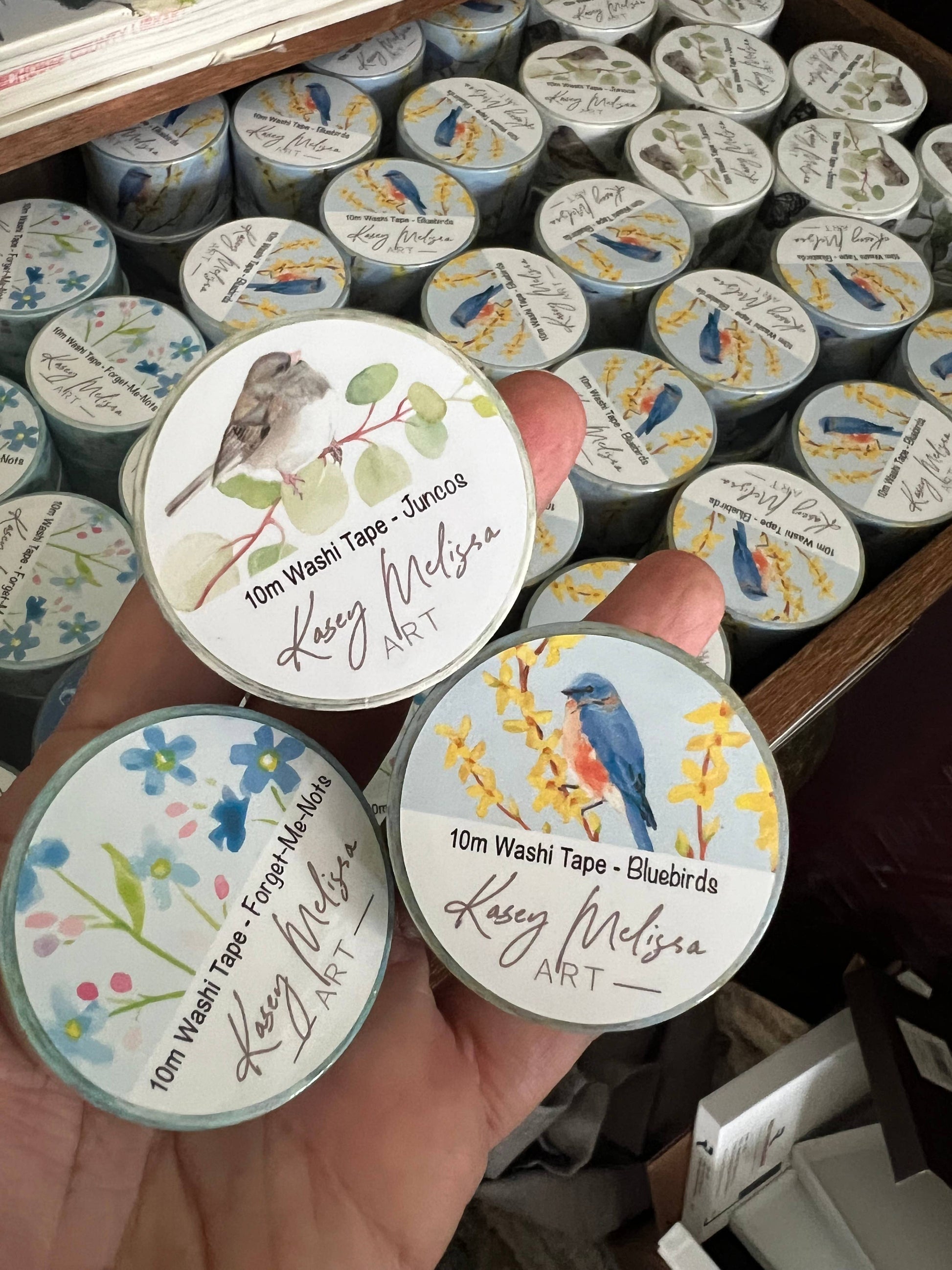 Kasey Melissa Art - Washi Tape / Blue Bird and Forsythia Flower