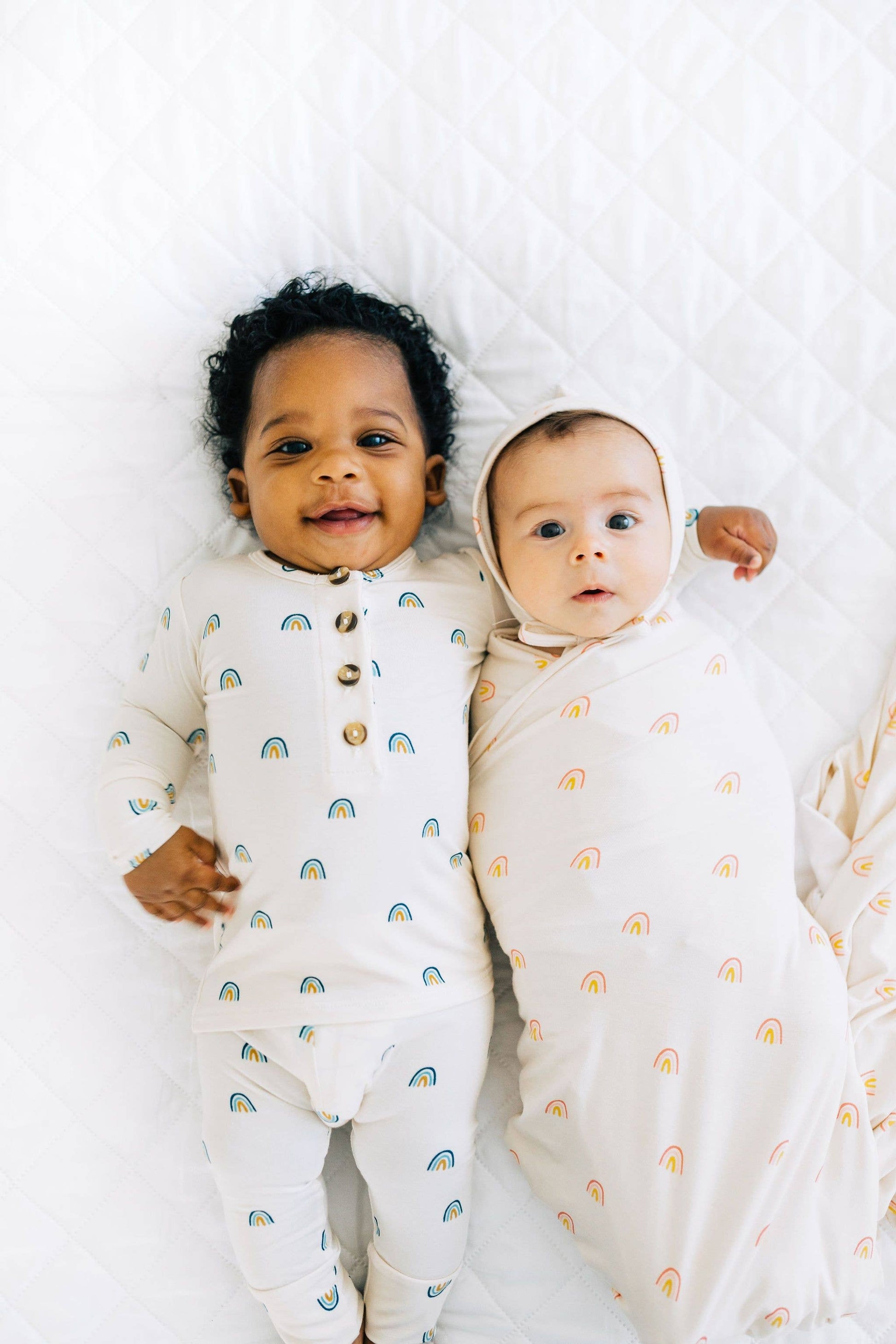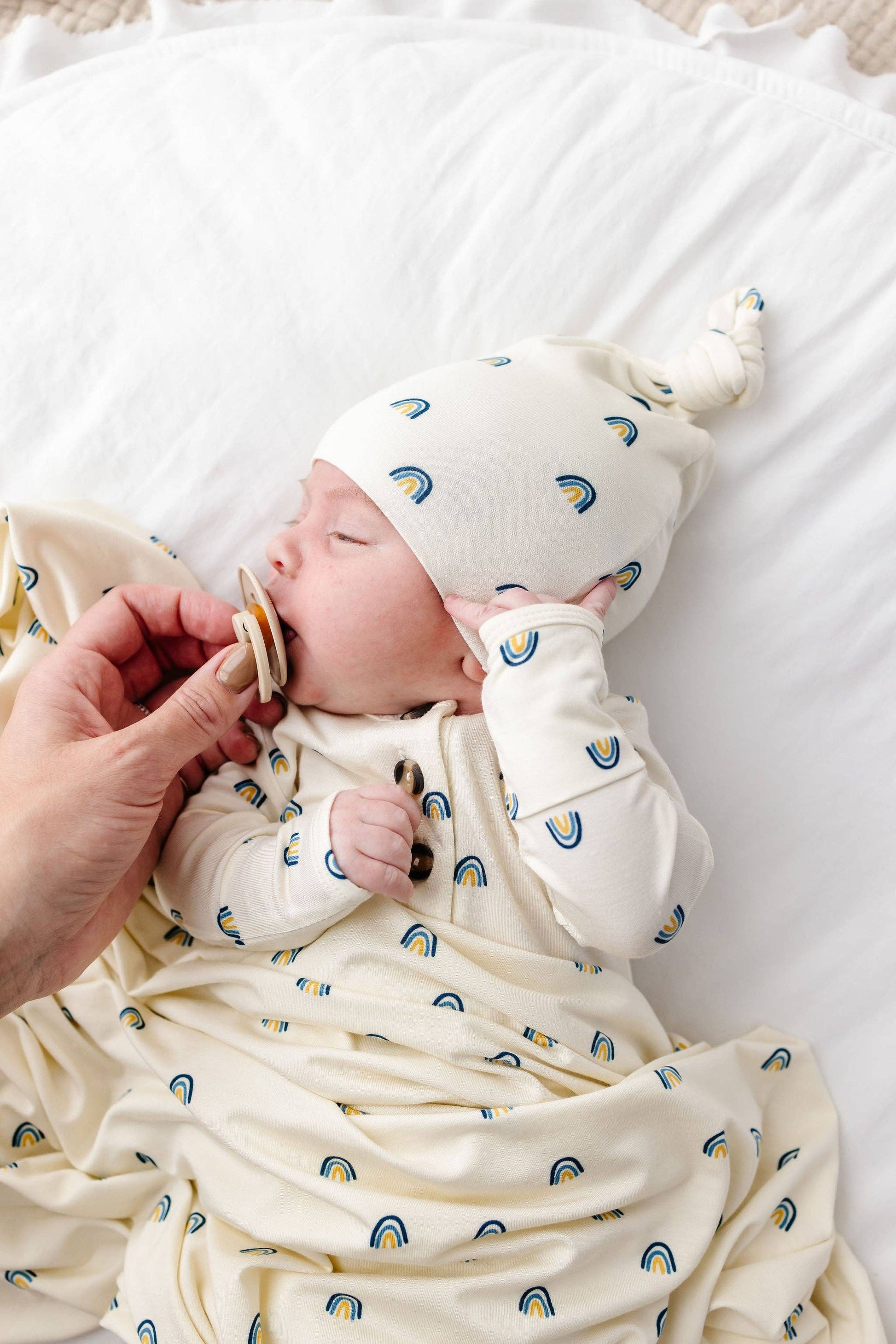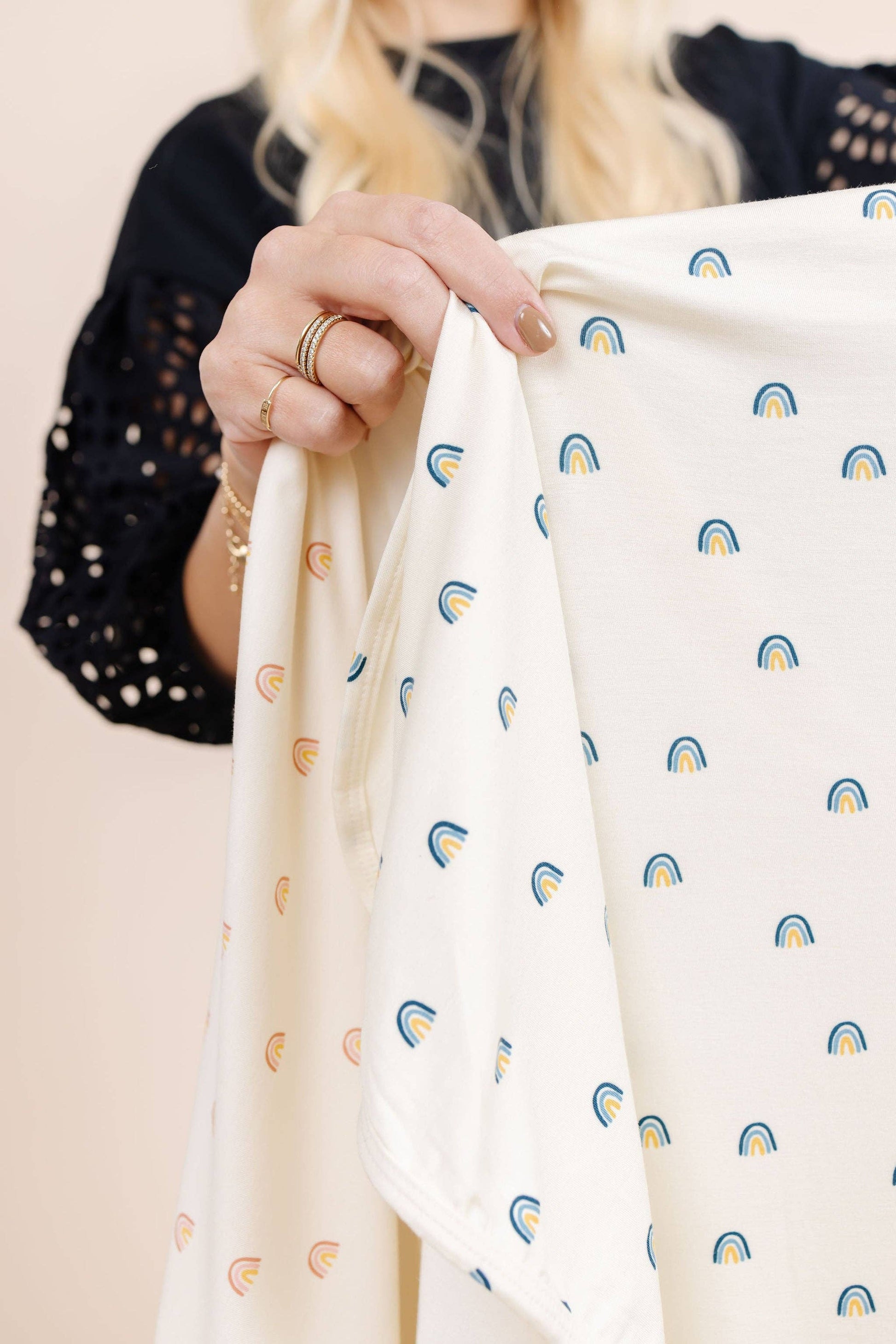 Color: Cream + Blue Rainbows