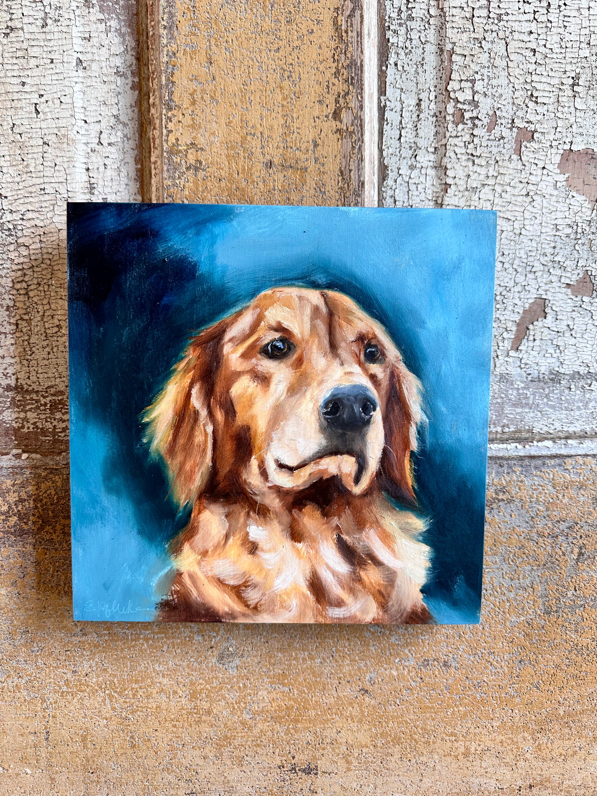 An 8x8” painting, oil on cradled wood panel of the best and most loyal companion. 🩷
