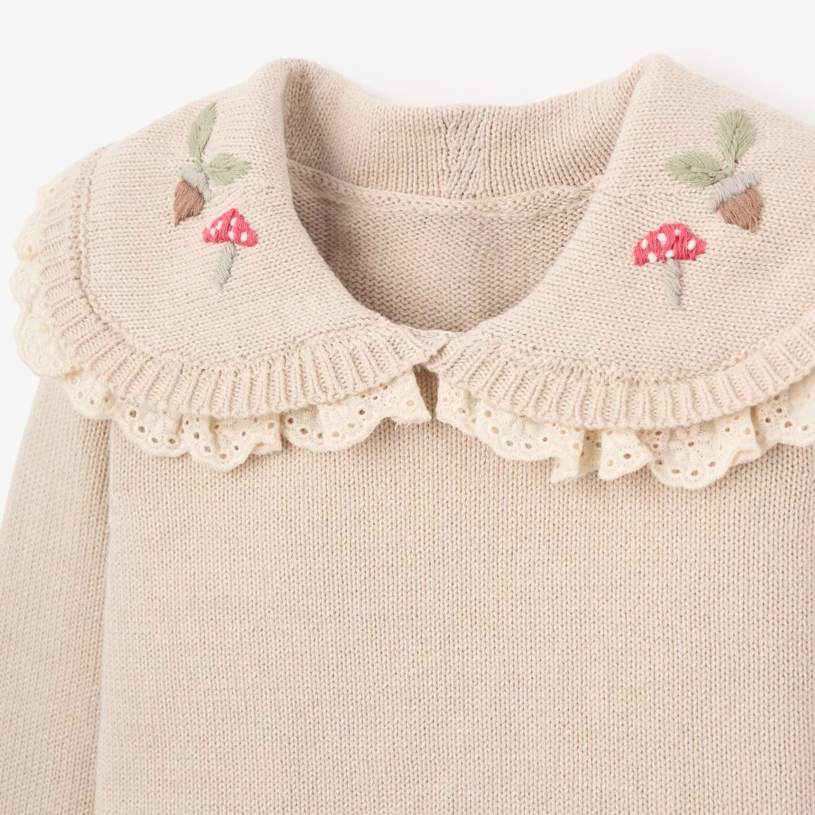 Mushroom Embroidered Collar Sweater + Skirt Set