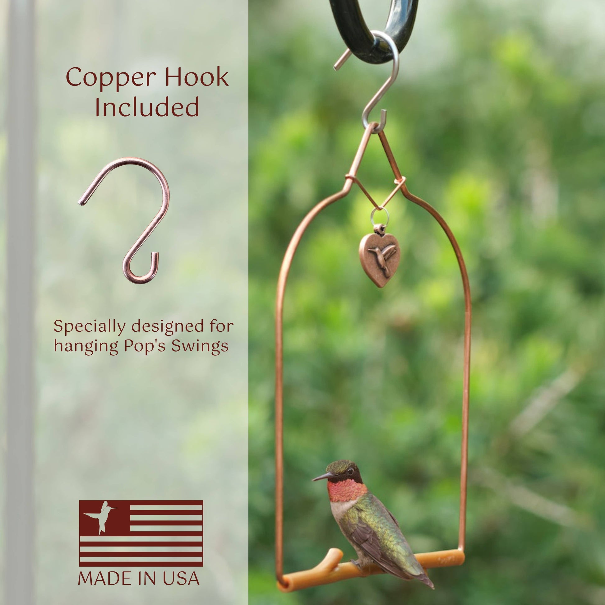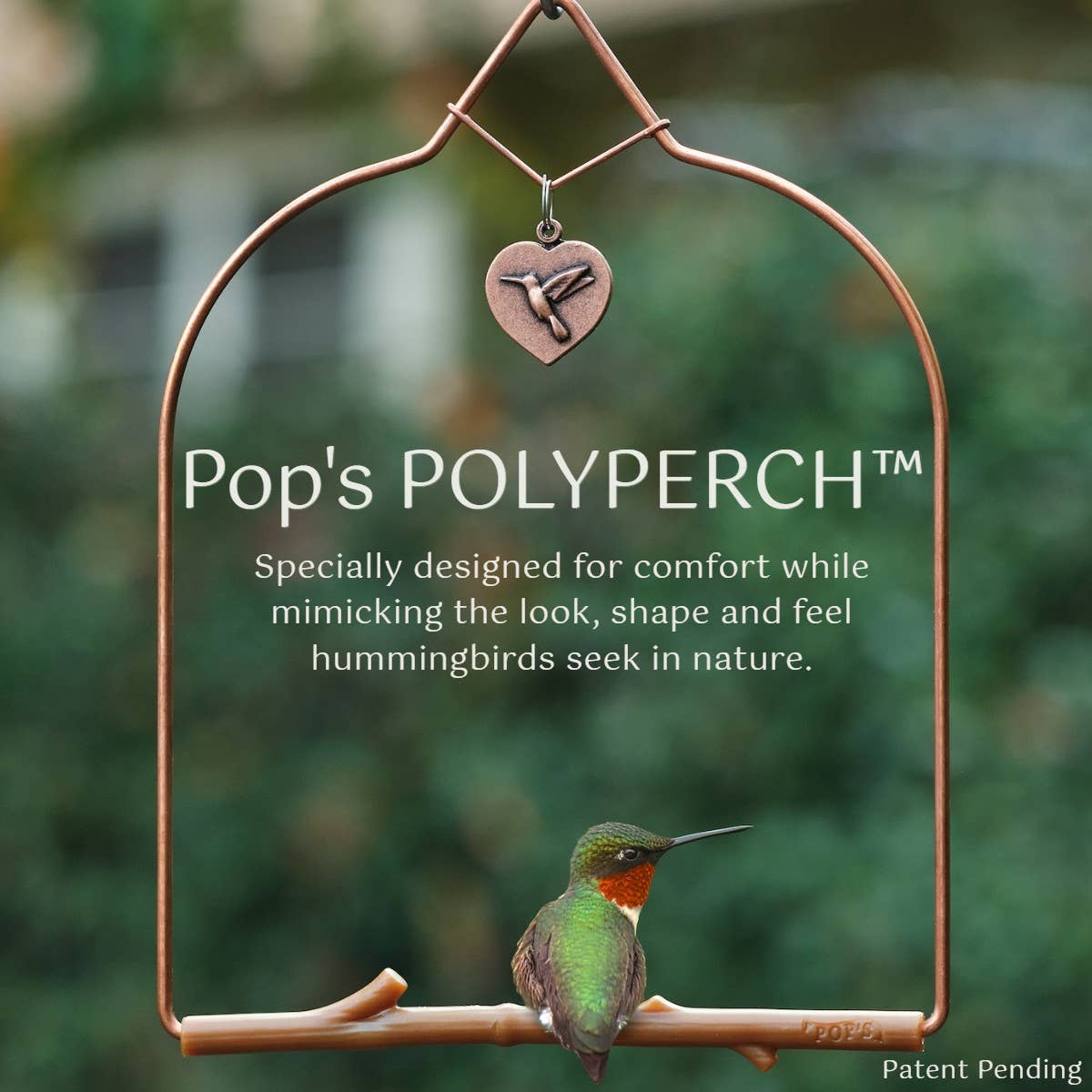 Pop's Patent Pending POLYPERCHâ„¢ was specially designed to mimic the look, shape and feel hummingbirds seek in nature while offering the most comfortable perch to rest. Swing includes a perfectly paired copper hook for easy hanging.