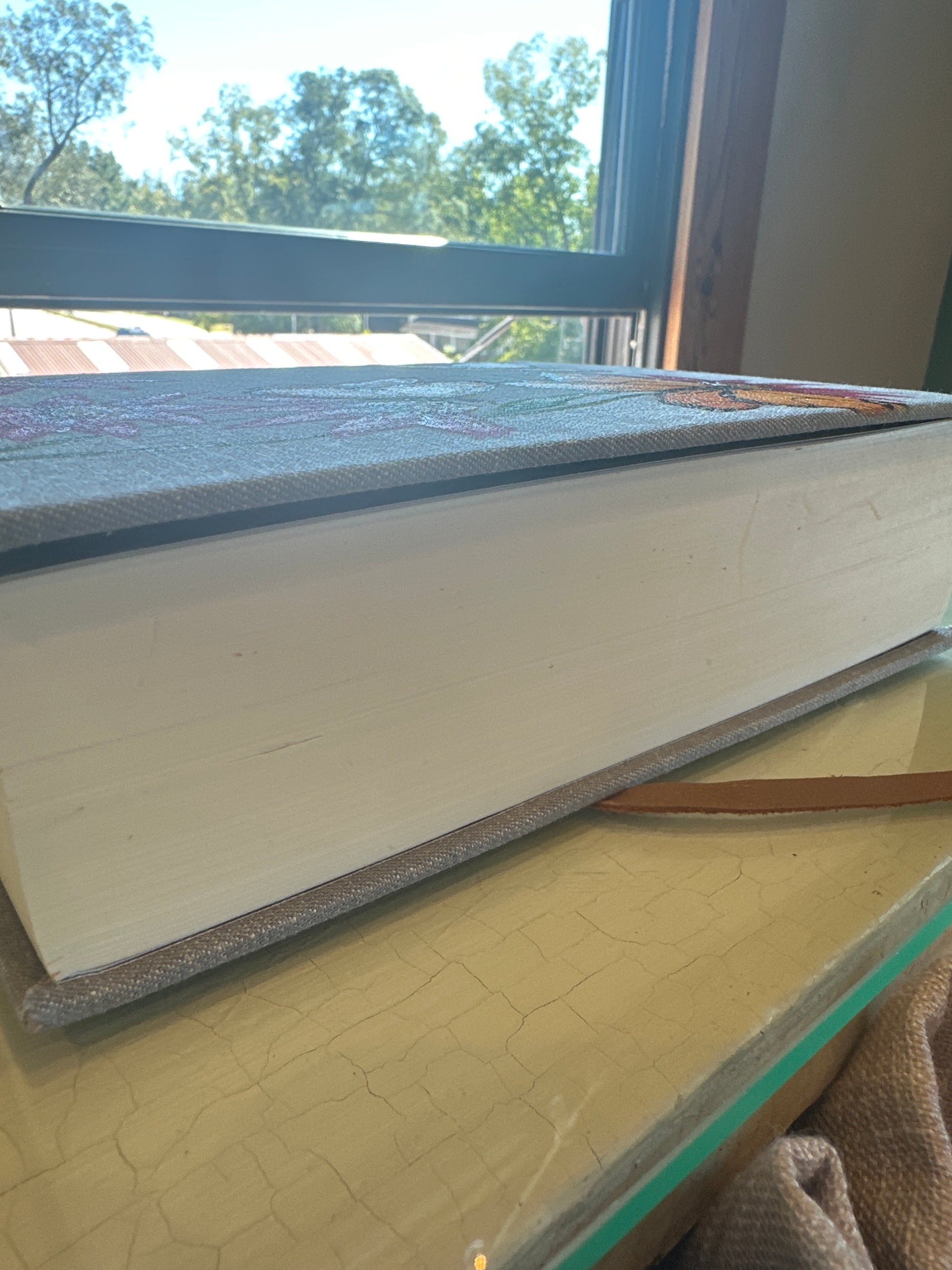 Please note that this Bible has a couple of very small imperfections. They aren’t very noticeable, but we don’t want you to be surprised. There is a small indentation on the top center of the front cover, and there is a wrinkling of a couple of pages on the side as well as a few markings on the sides of the pages. We’ve included photos for you to see of all of these things. We’ve also reduced the price to align with this. If this will be your daily Bible, then these small details will soon become mixed with your own signs of a well read Bible! 🩷