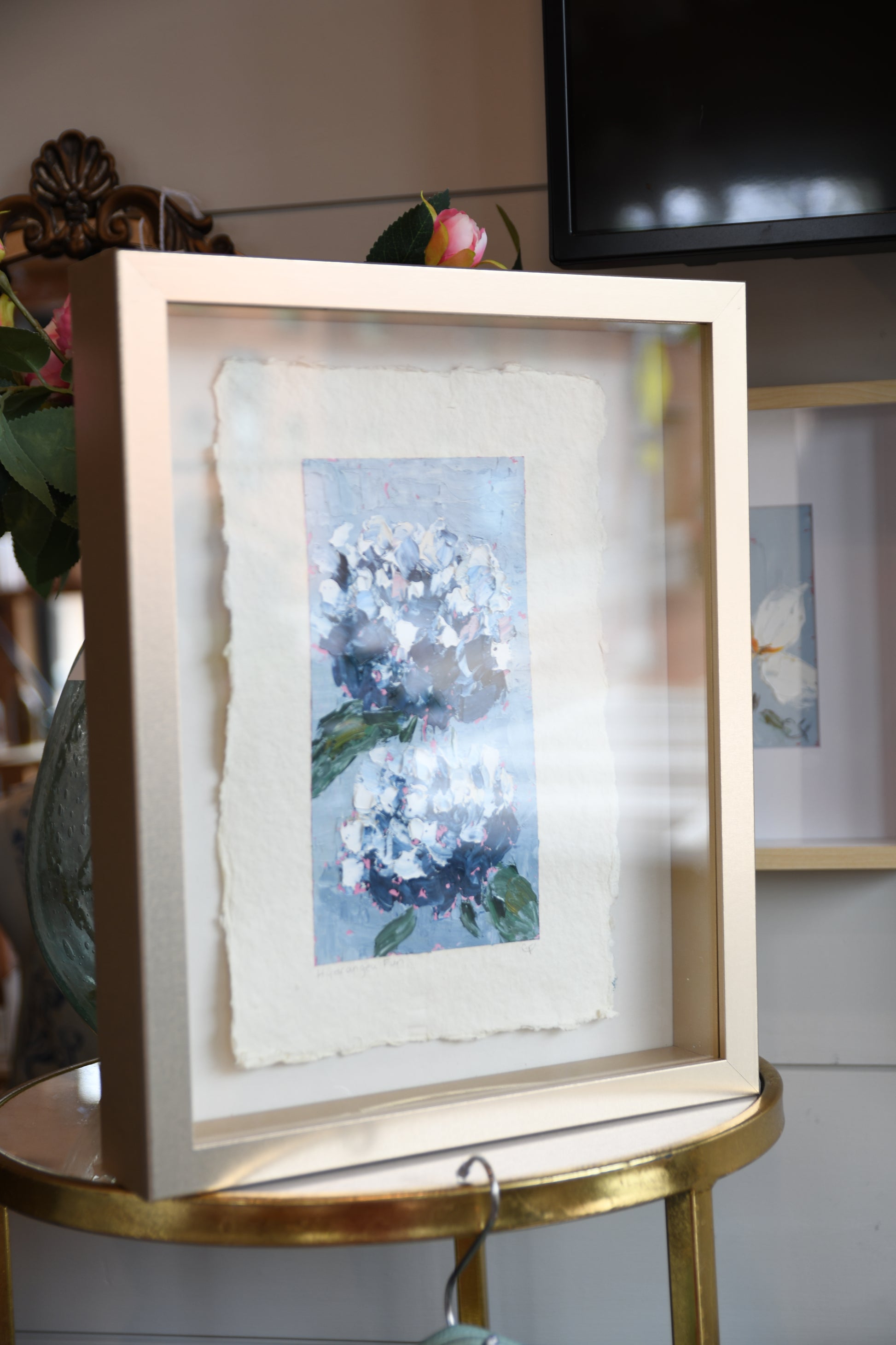 Oil Hydrangeas on Paper in Shadowbox Frame