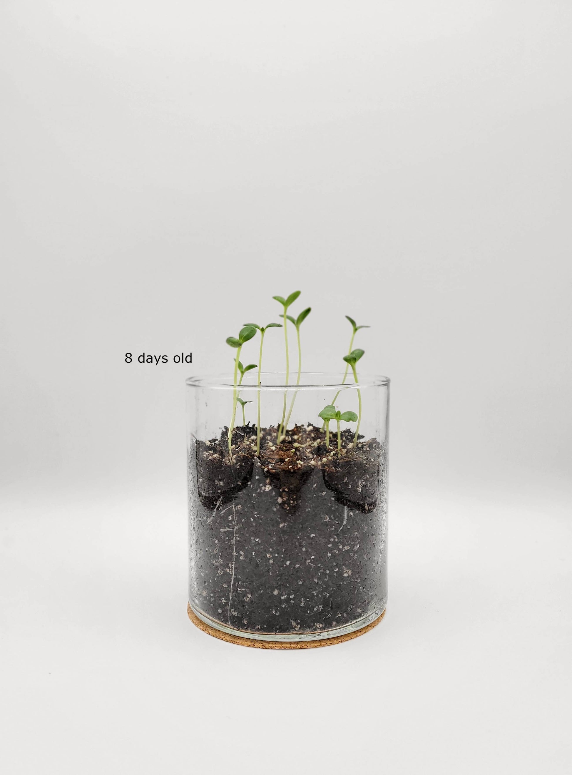 Includes: US made glass vessel, soil-less mix, cork coaster, directions.