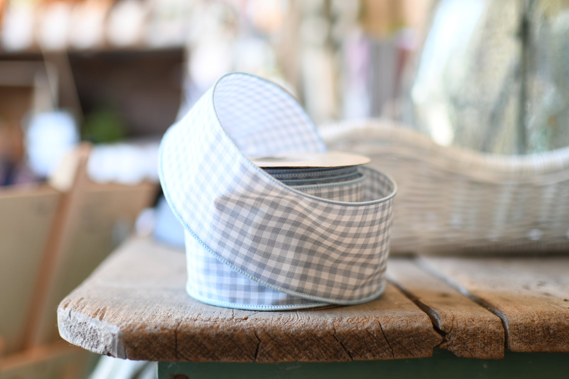 Sweeten up your projects and arouse thought of summertime picnics with our classic and colorful gingham check ribbon. Wire edges for easy bow making! Gingham Check Wired Edge, Light Blue, 2-1/2 Inch Fiber Content: 65% Polyester 35% Cotton