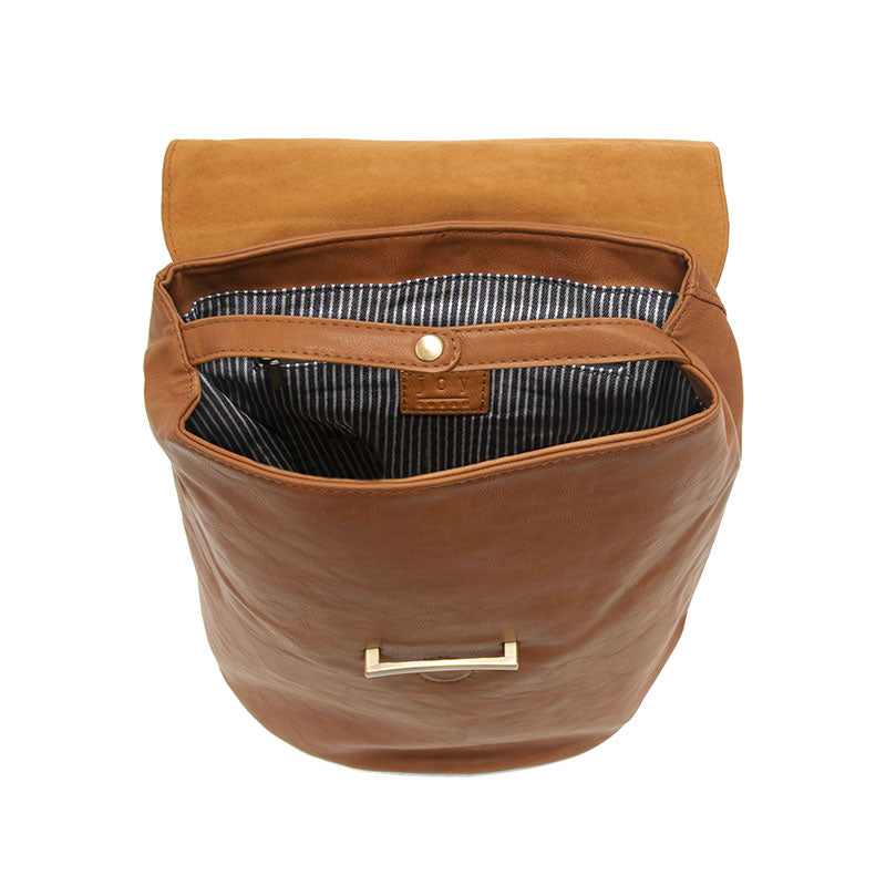 Accented with a gleaming bar closure and a hidden magnetic snap, this spacious backpack in glossy vegan leather will travel to the office and on to the weekend with ease. Roomy enough to carry your work essentials and more in a sleek sophisticated shape.