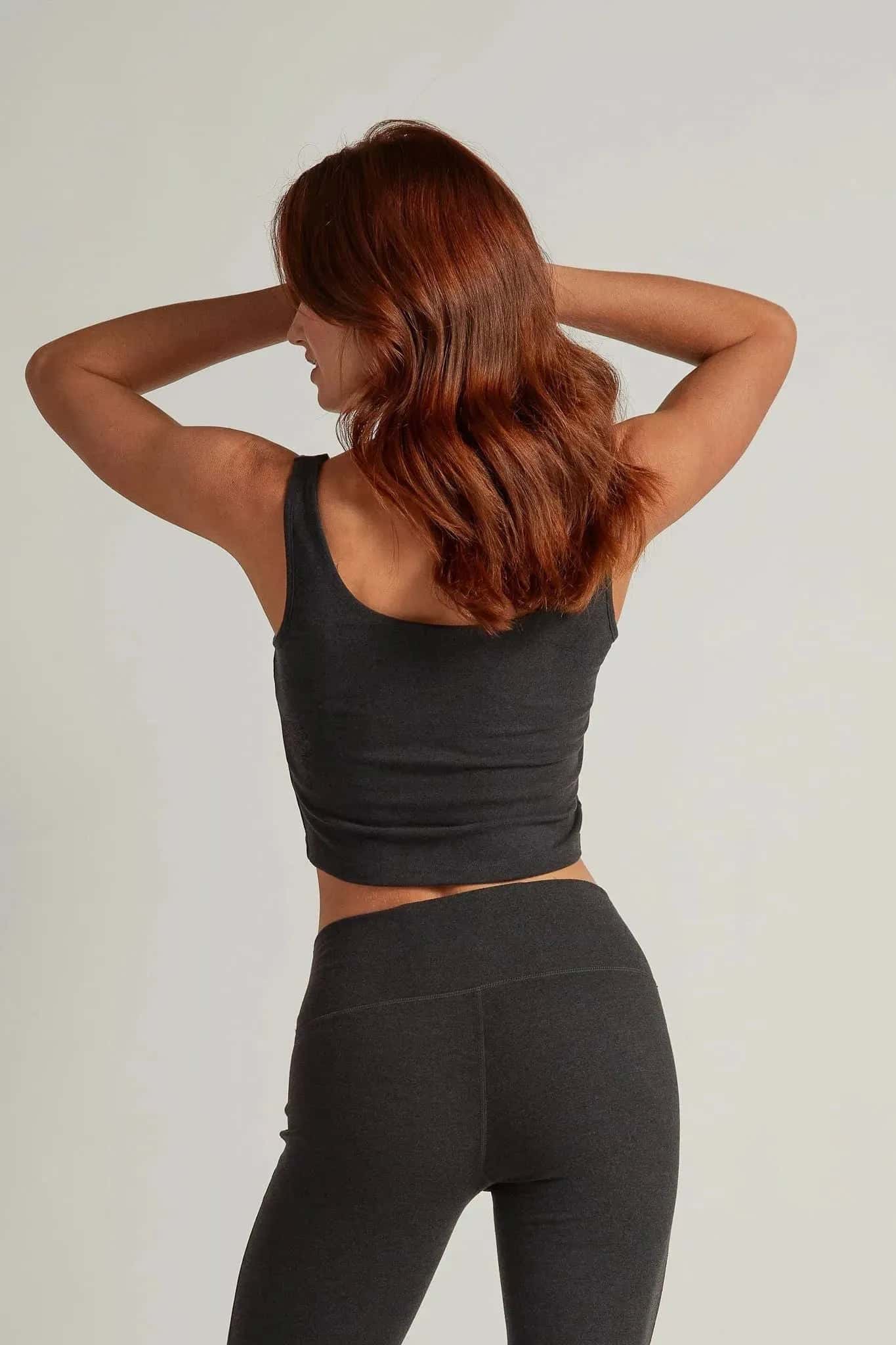 Rock the crop. With a supportive shelf bra, this elevated cropped tank balances the impulses of conceal and reveal with a slight glimpse of the midriff.