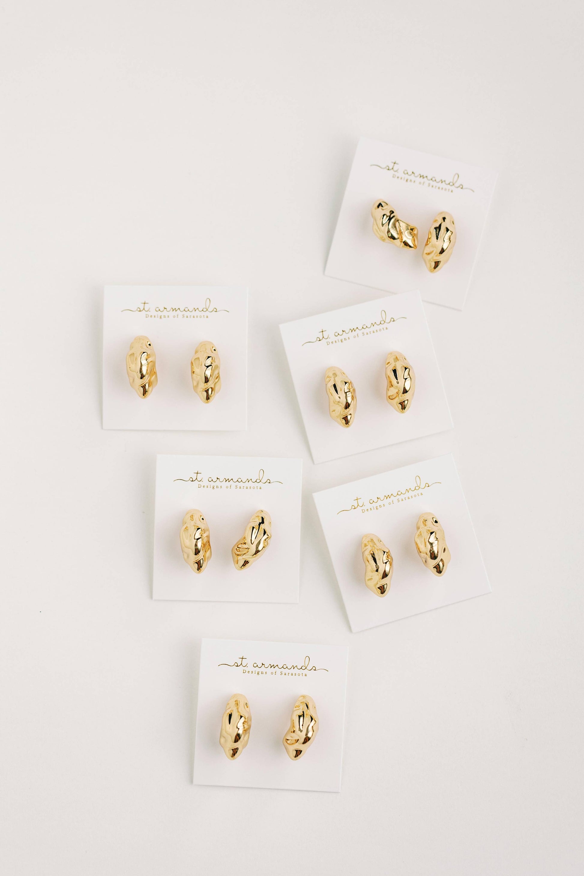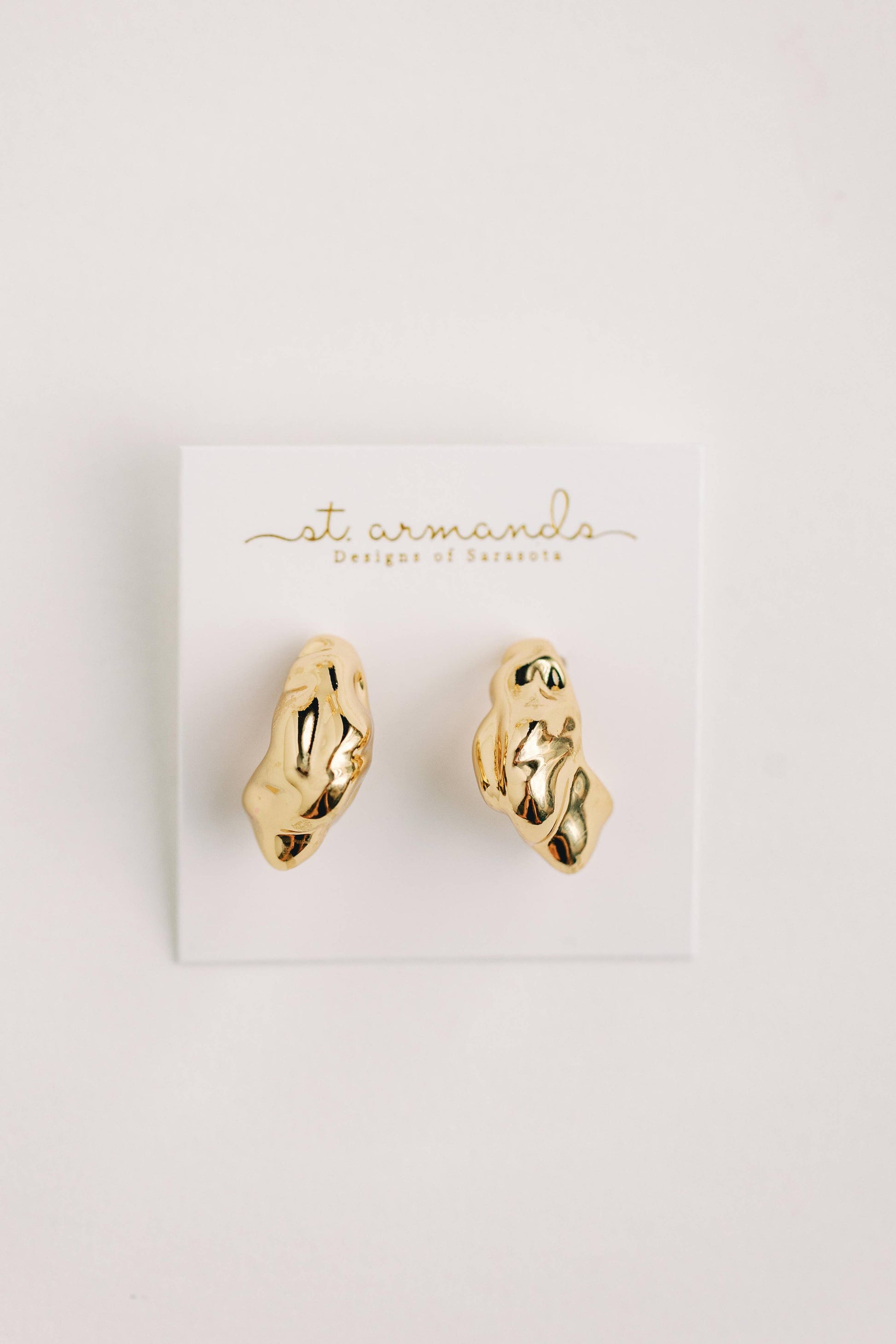St Armands Designs of Sarasota - Crumpled Gold Vintage Style Huggie Hoops