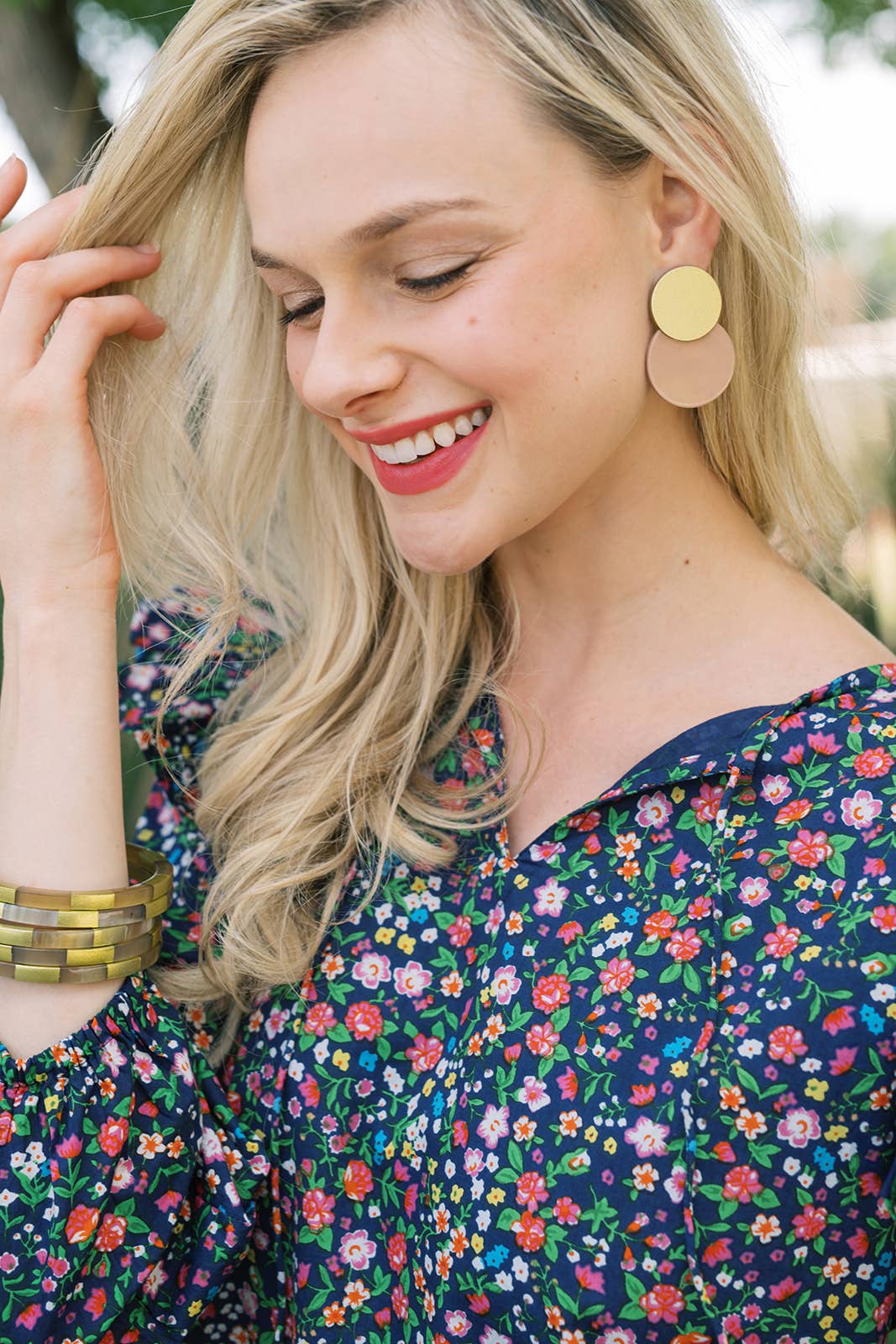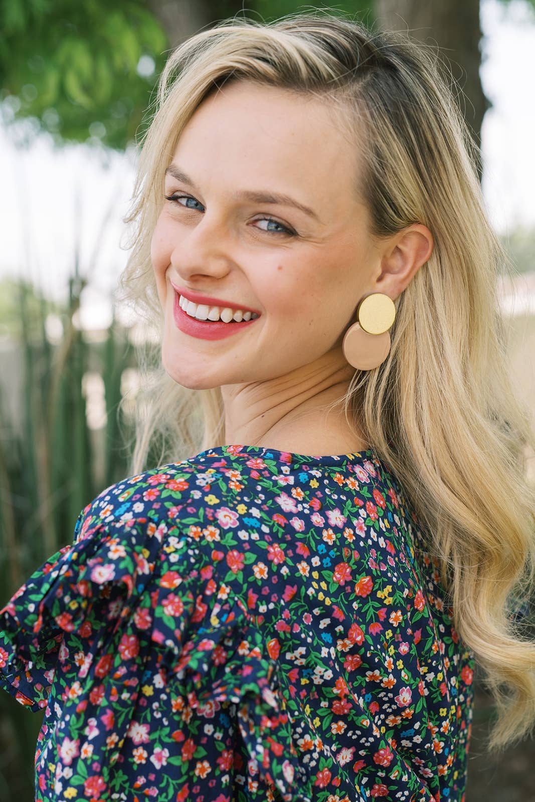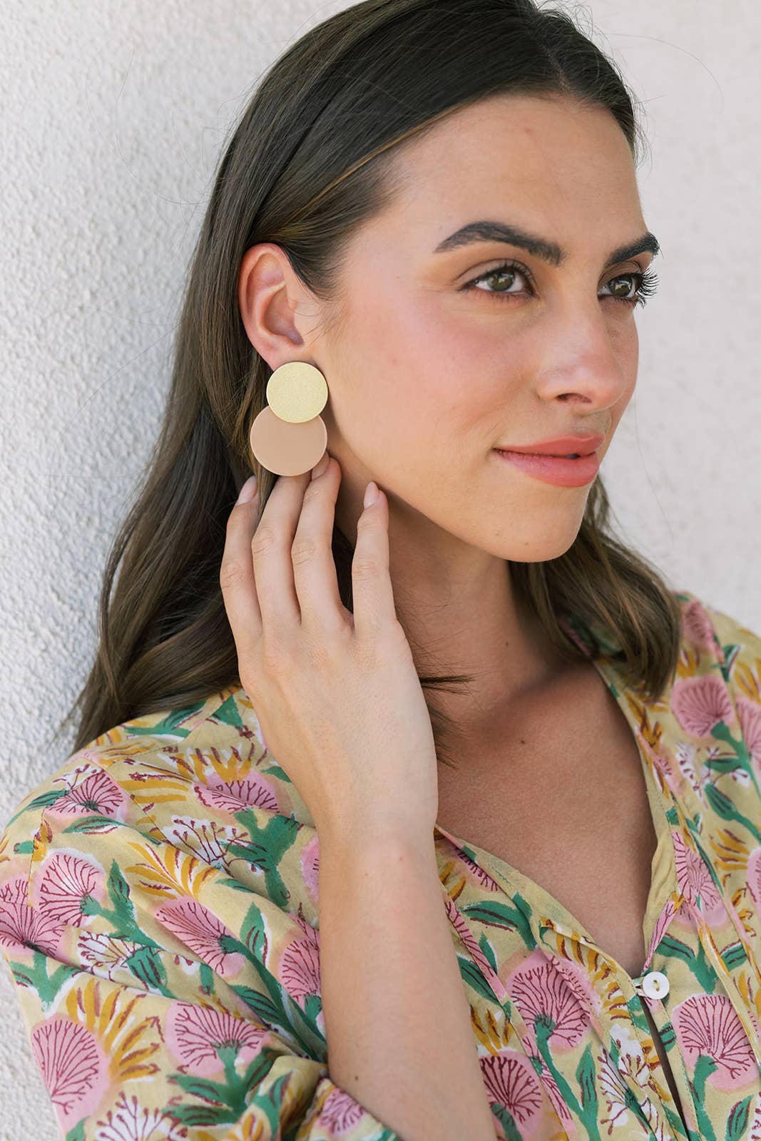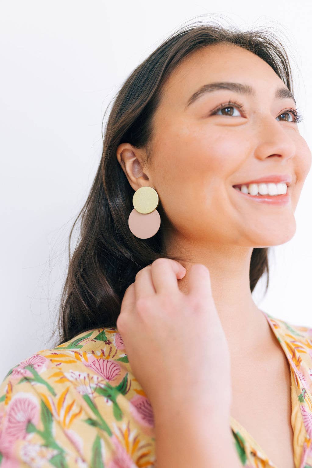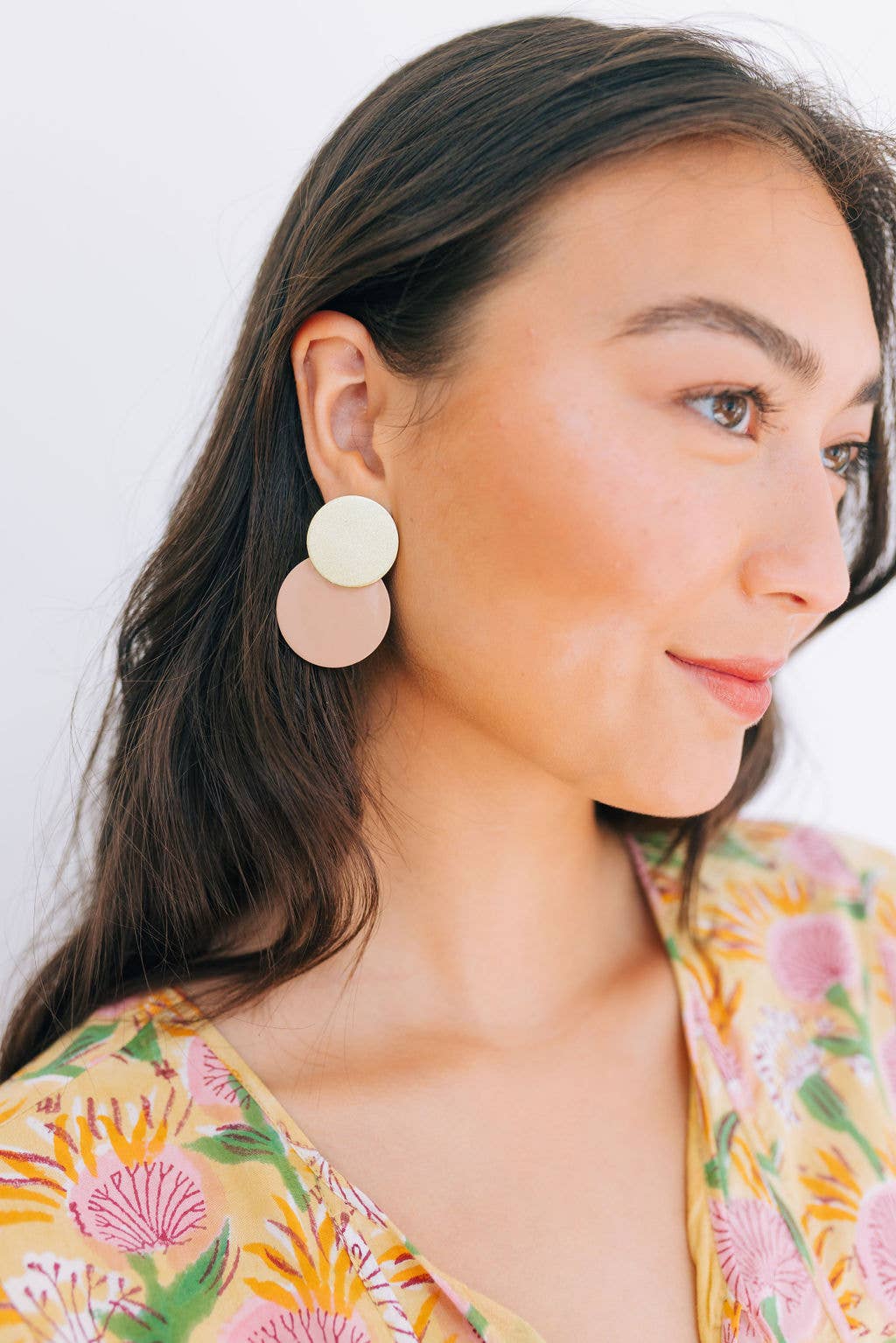 We are so in love with these shiny yet neutral Sandy Metallic Circle Earrings. The shiny metallic gold and soft mauve pink will be sure to bring elegance and a sparkle wherever you go!
