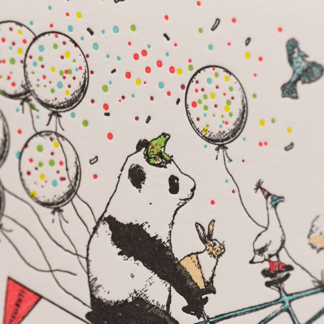 Let's get the party started! Send your happy birthday wishes with this fun animal friends gem. They are ready to celebrate! Paired with a perfectly matching envelope and is available as a single card or a boxed set of 6. Size- a2 4.25" x 5.5". Blank inside.