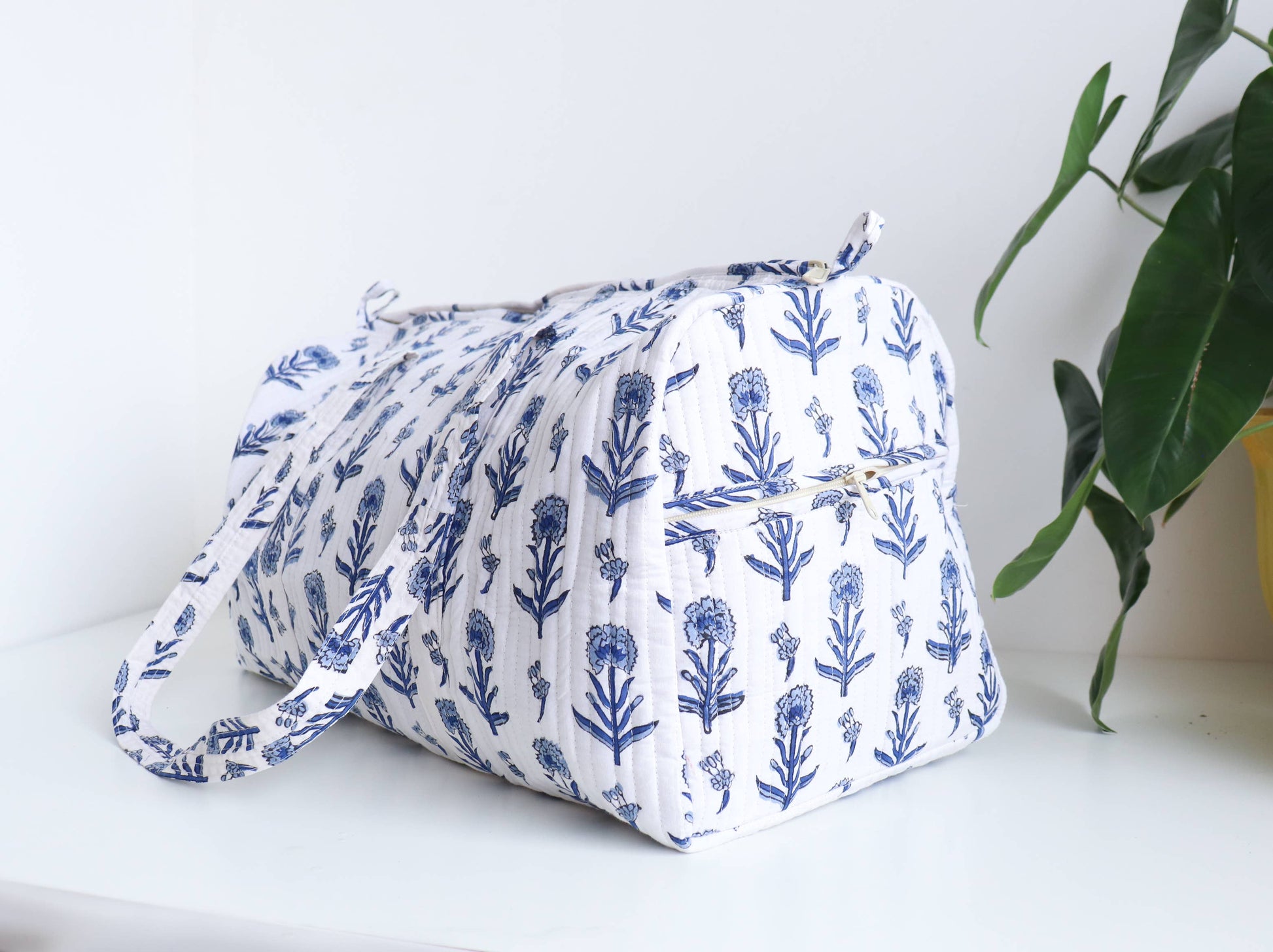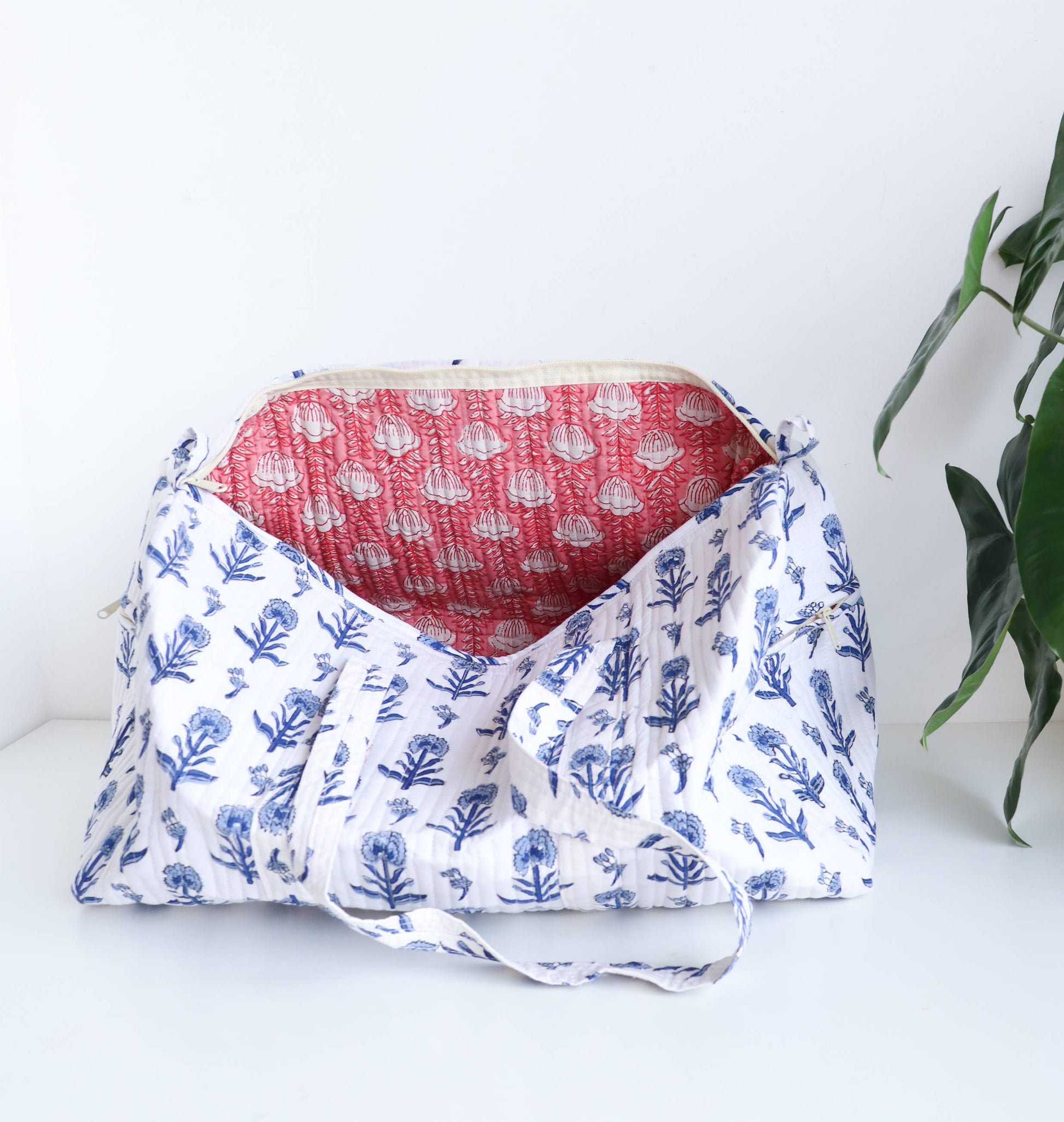 Introducing our exquisite cotton handmade handblock printed weekender bag, meticulously crafted by talented local women artisans.