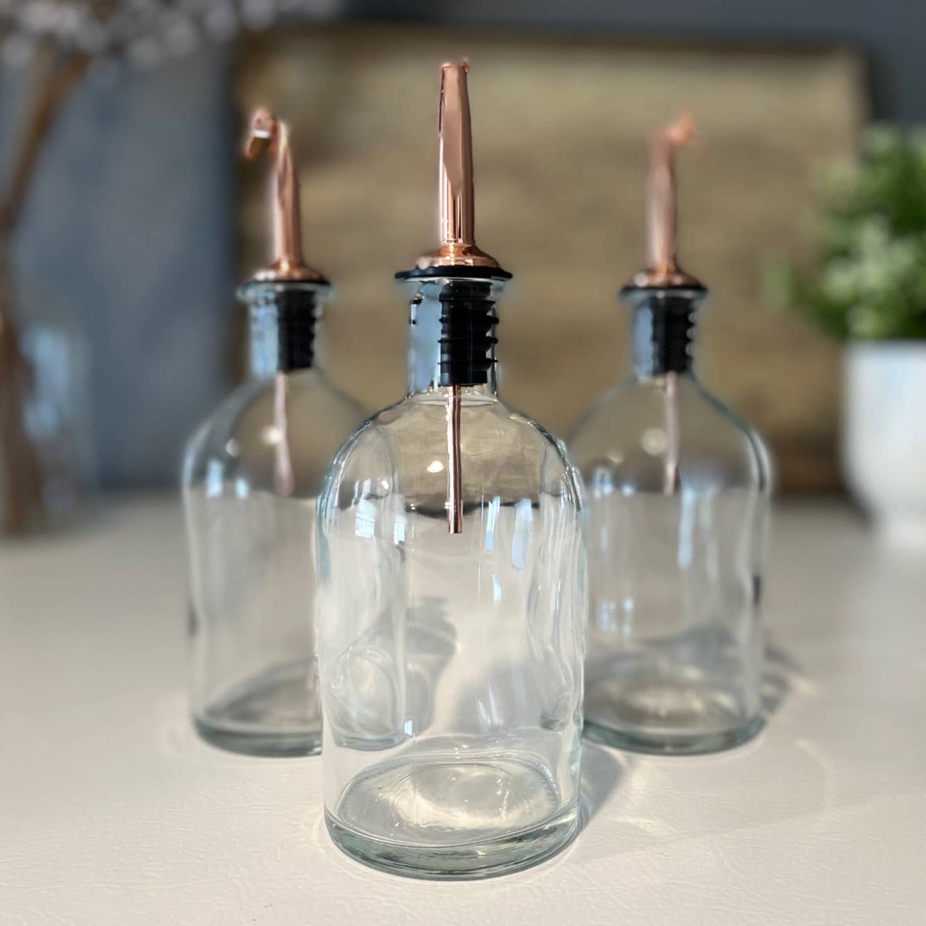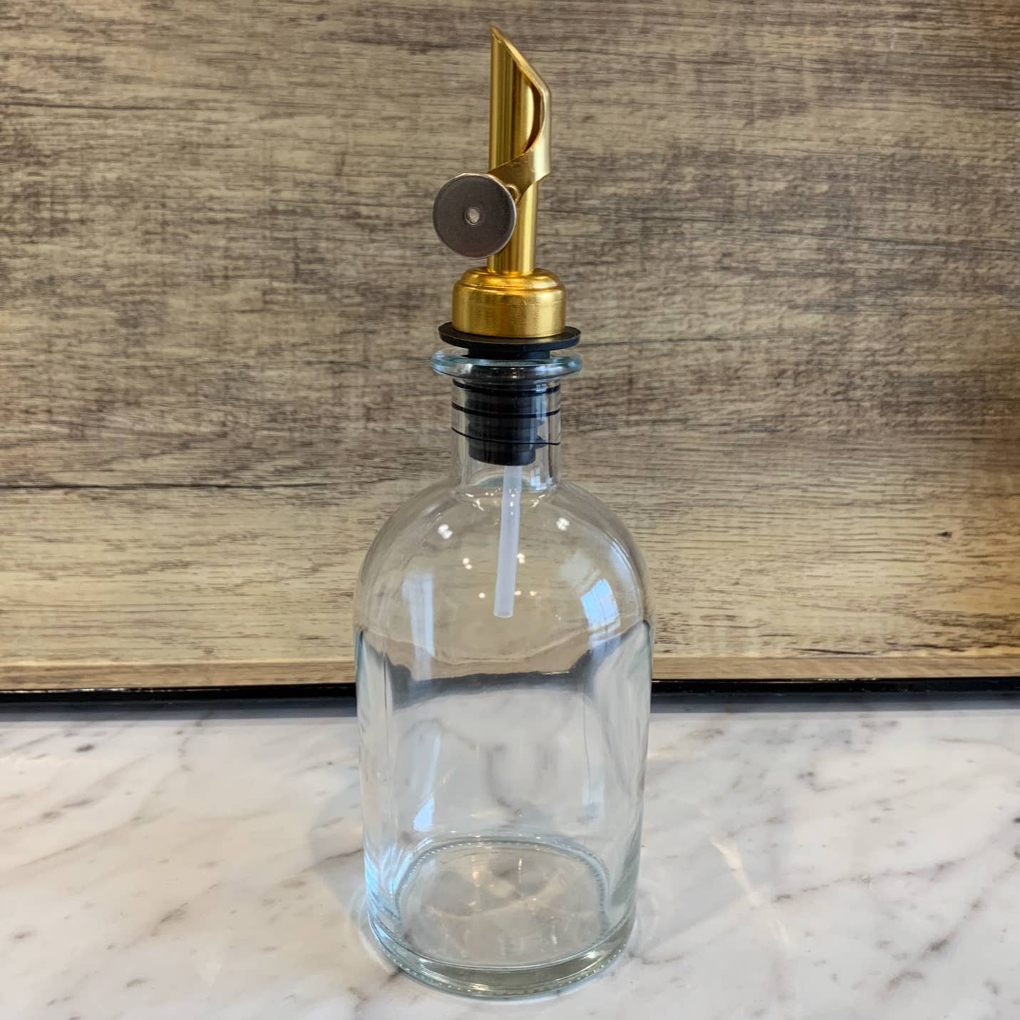 This versatile style apothecary bottle holds an ample amount of oil, vinegar, or any other cooking liquid. Perfect for a gift or to keep for yourself! The bottle arrives empty and ready to fill!