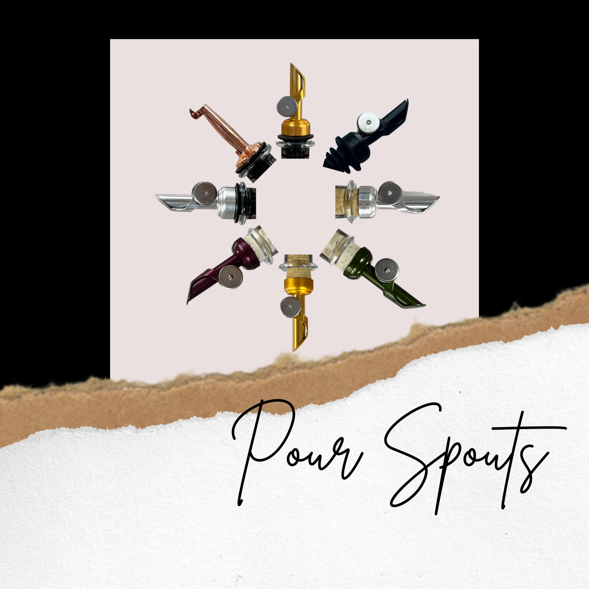 The removable weighted pour spouts support quick filling and easy hand washing. Cork bases are available in gold, silver, burgundy or olive and the rubber bases are available in gold, silver or copper.