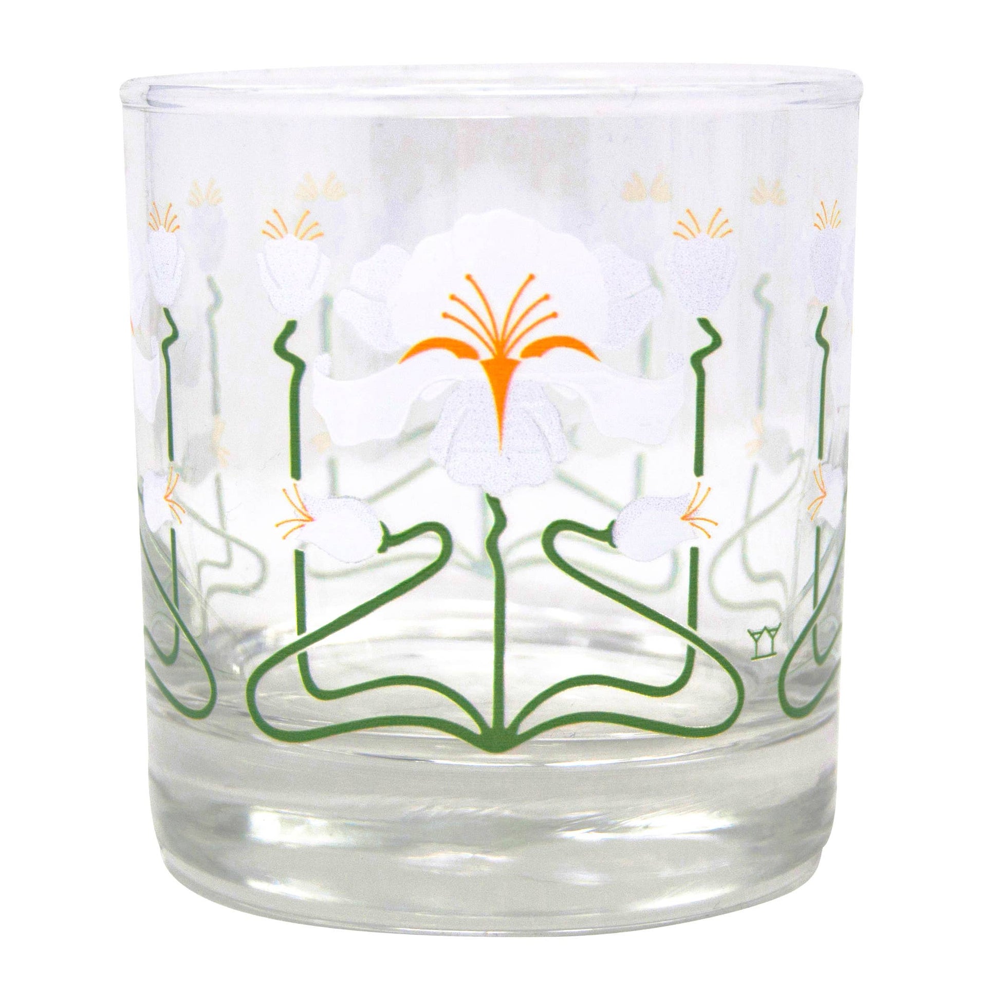 When it comes to design, we adore Art Nouveau. We also love flowers, especially the classic white iris. We decided to combine these two elements and created our White Iris Rocks glass. Our White Iris Rocks holds 11 oz. and measures 3 1/2” tall by 3 1/4” wide. Pairs perfectly with our other floral glassware designs!