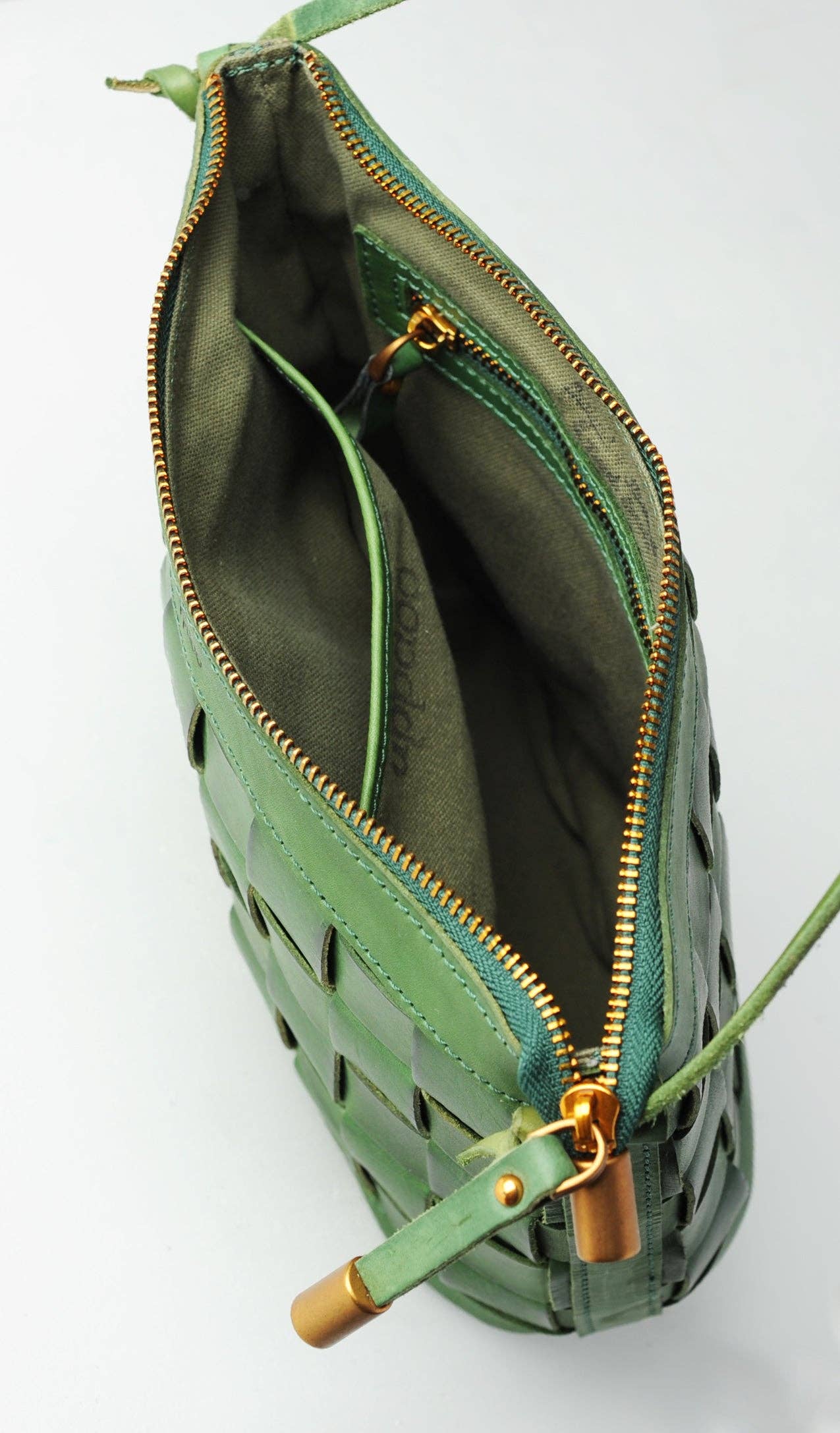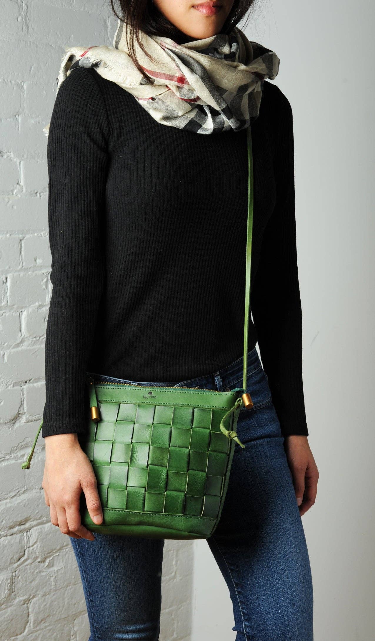 Venture Cross-body Bag features rustic hand-interwoven construction with luxurious full-grain hand-dyed Italian Vachetta leather. Its compact and versatile style reflects a warm, modern touch that is made to last and age gracefully on your shoulder. The leather will age beautifully with time and use! Antique finished solid brass hardware highlights all the small fine details on the bag.